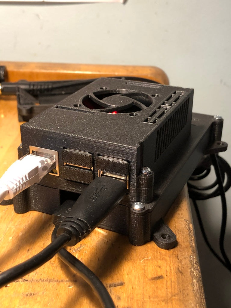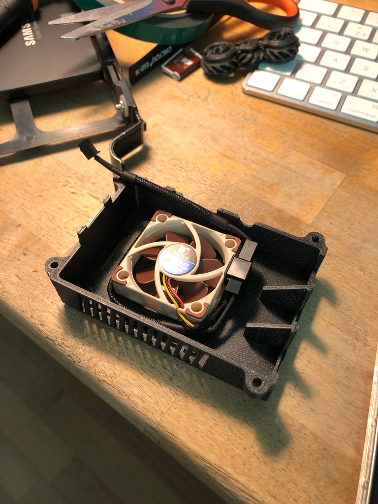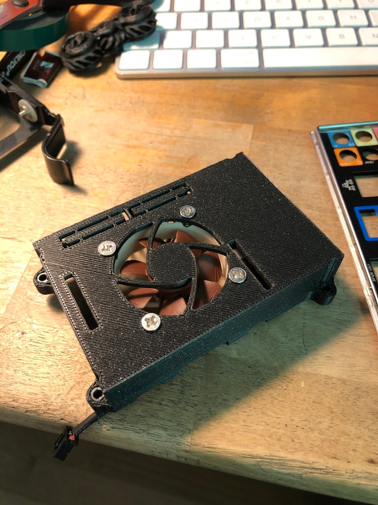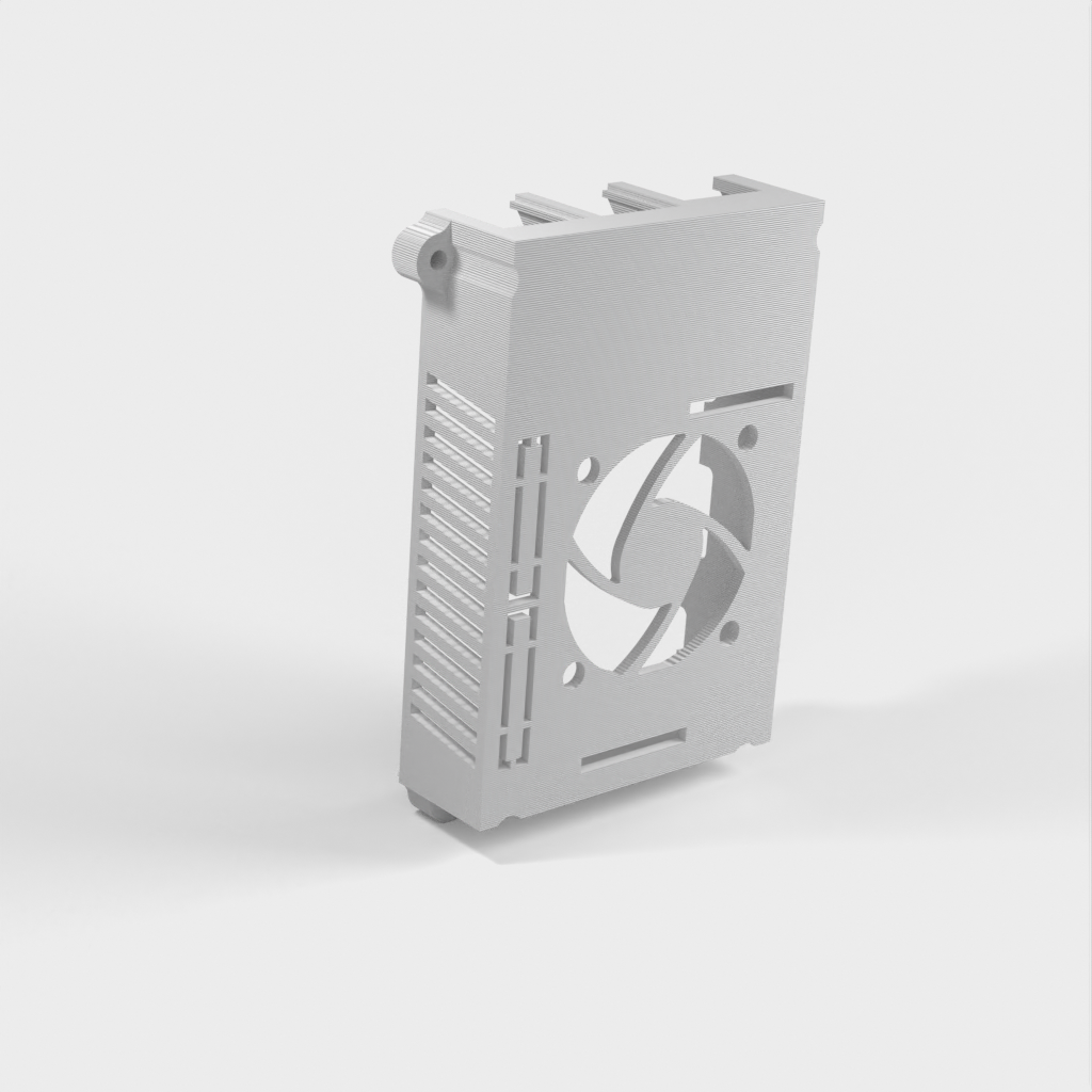 Une partie supérieure modifiée pour un boîtier Raspberry Pi 3, conçue pour accueillir un ventilateur de 40x40x10mm et des sorties latérales afin d'améliorer le refroidissement du boîtier. Ce changement de conception réduit considérablement la température du processeur, augmentant ainsi la durée de vie du Raspberry Pi, en particulier dans les environnements 24/7 tels que les configurations NAS. Veuillez noter que cette version n'est pas compatible avec le Raspberry Pi 4 car la disposition des ports est différente. L'emplacement du ventilateur et de l'élément chauffant signifie également que ce top peut toujours être utilisé avec des plaques chauffantes.