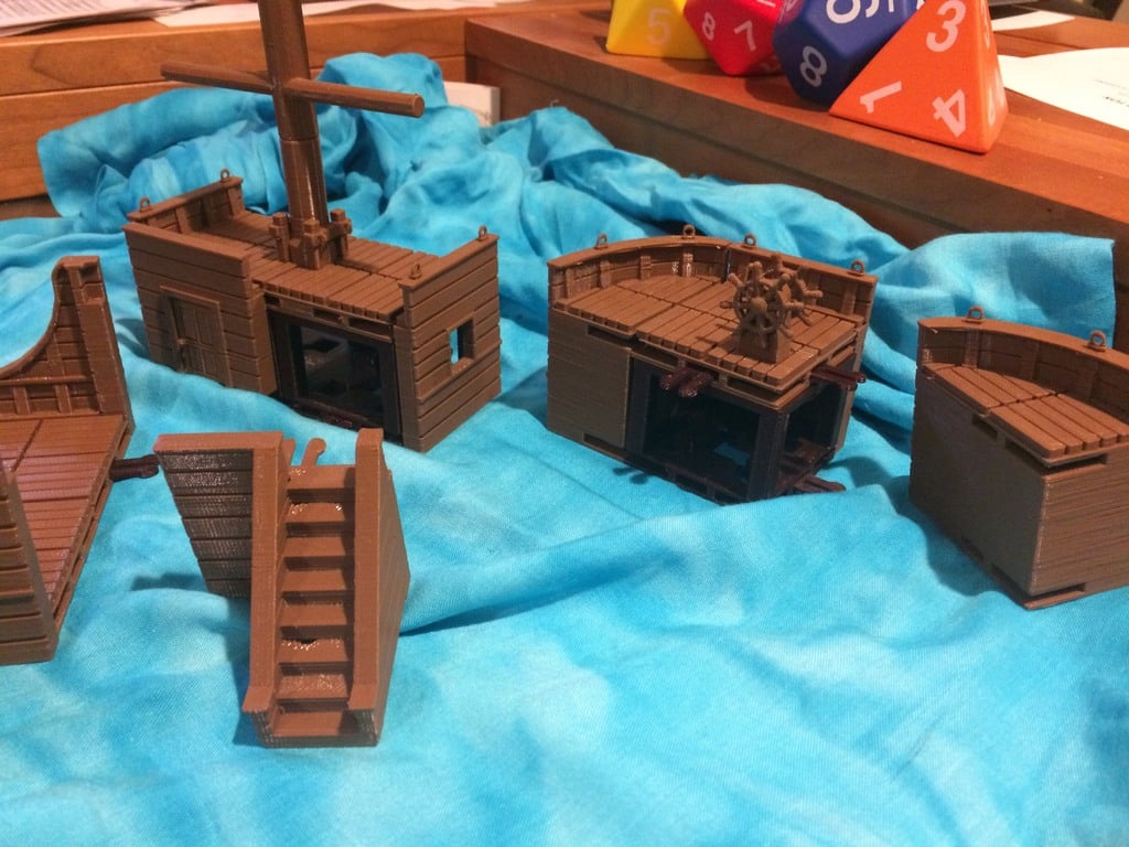 Le kit comprend des tuiles spécialement conçues et des éléments de support qui permettent de construire des gaillards d'avant et des gaillards d'arrière avec des différences de hauteur réalistes. Les murs intérieurs, les portes et les escaliers peuvent être facilement intégrés, créant ainsi une expérience immersive pour les joueurs qui naviguent sur les différents ponts du navire.