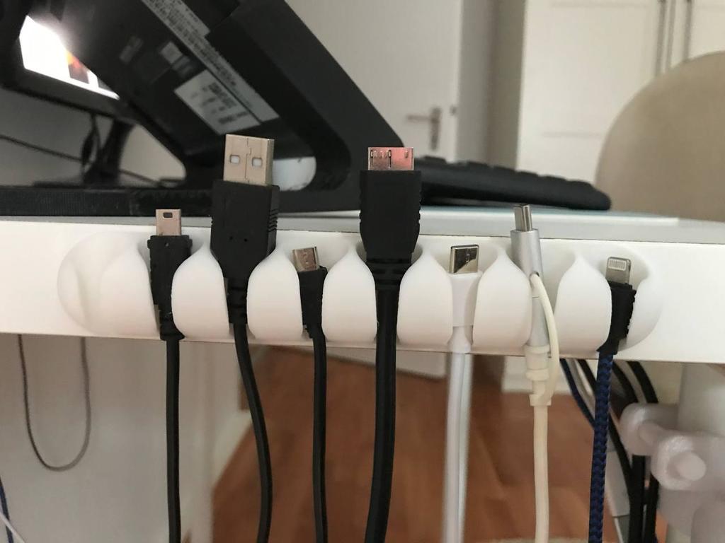 Rail de câble universel qui s'adapte à de nombreux câbles USB et appareils intelligents différents.