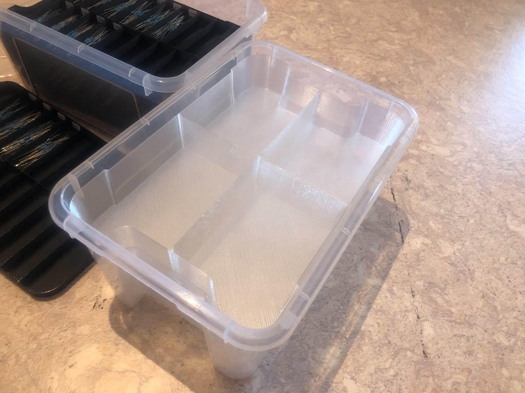 Ce sont des pièces d'insertion réglables pour les boîtes IKEA Samla de 5 litres. Ils vous permettent de créer un réseau réglable à l'intérieur des boîtes afin de mieux organiser vos articles. Ils sont divisibles en deux et en quatre, ce qui offre des options de personnalisation supplémentaires. Vous pouvez même graver ou gaufrer des étiquettes de couche pour une meilleure organisation. Ils sont idéaux pour un accès facile et l'organisation des petites pièces, et pour créer un système qui convient le mieux à vos besoins.