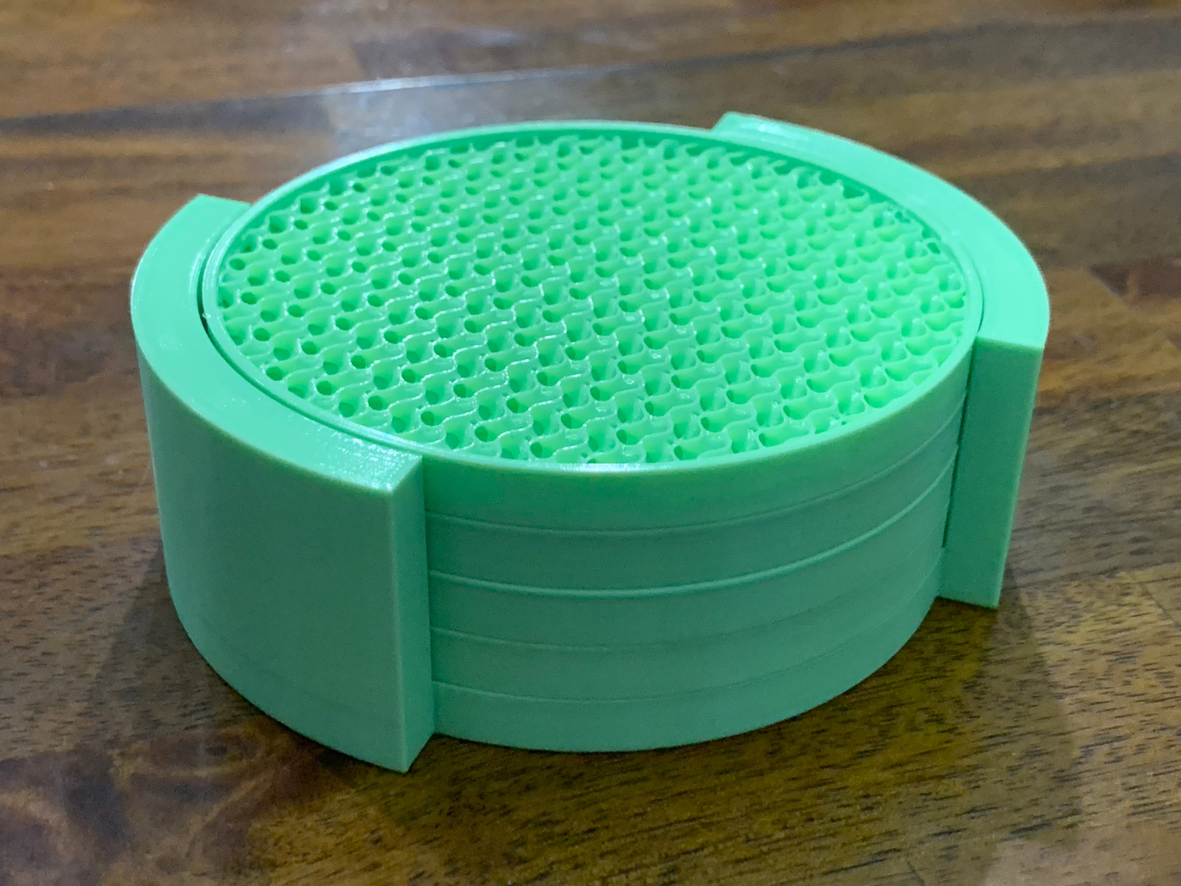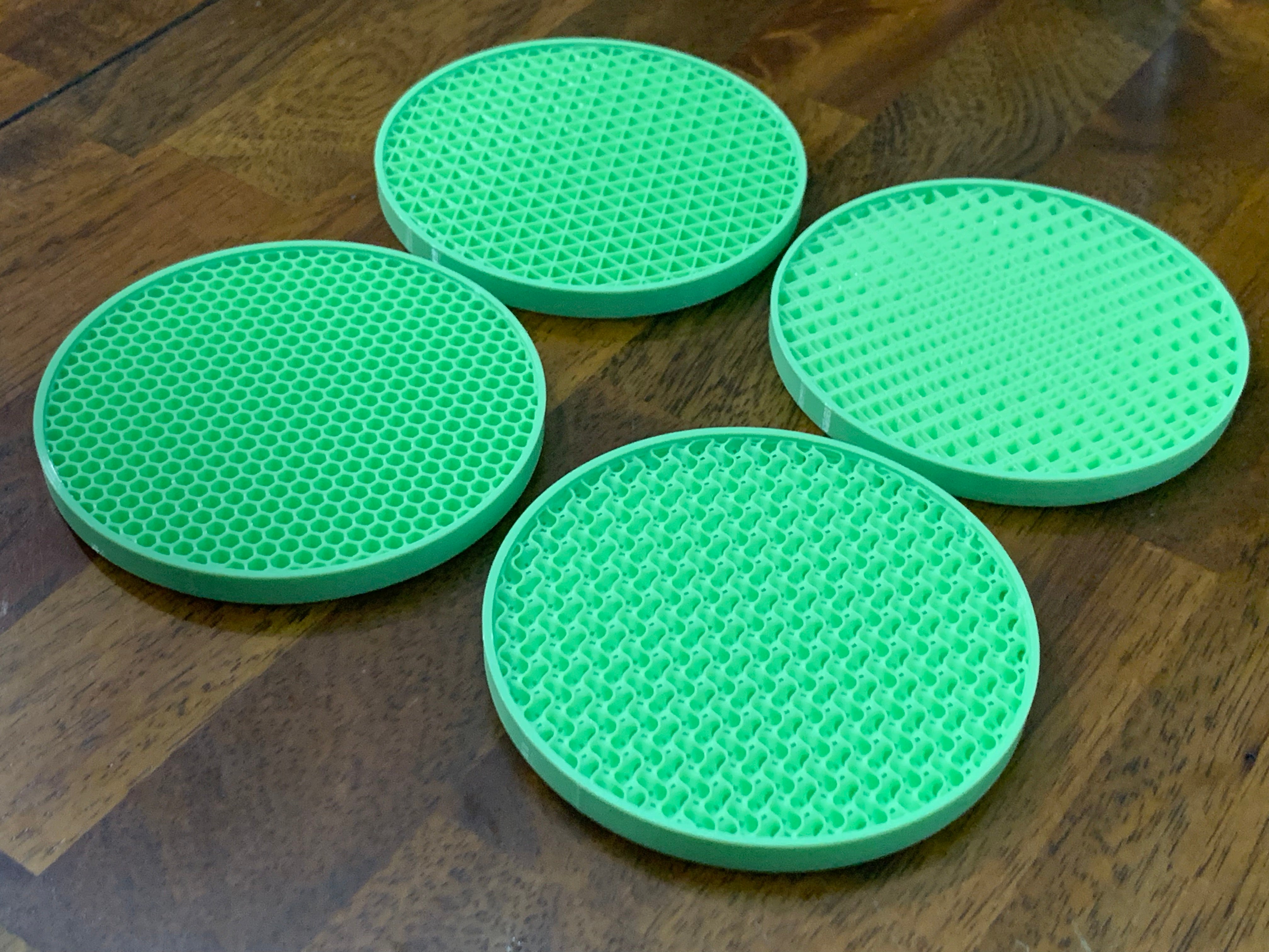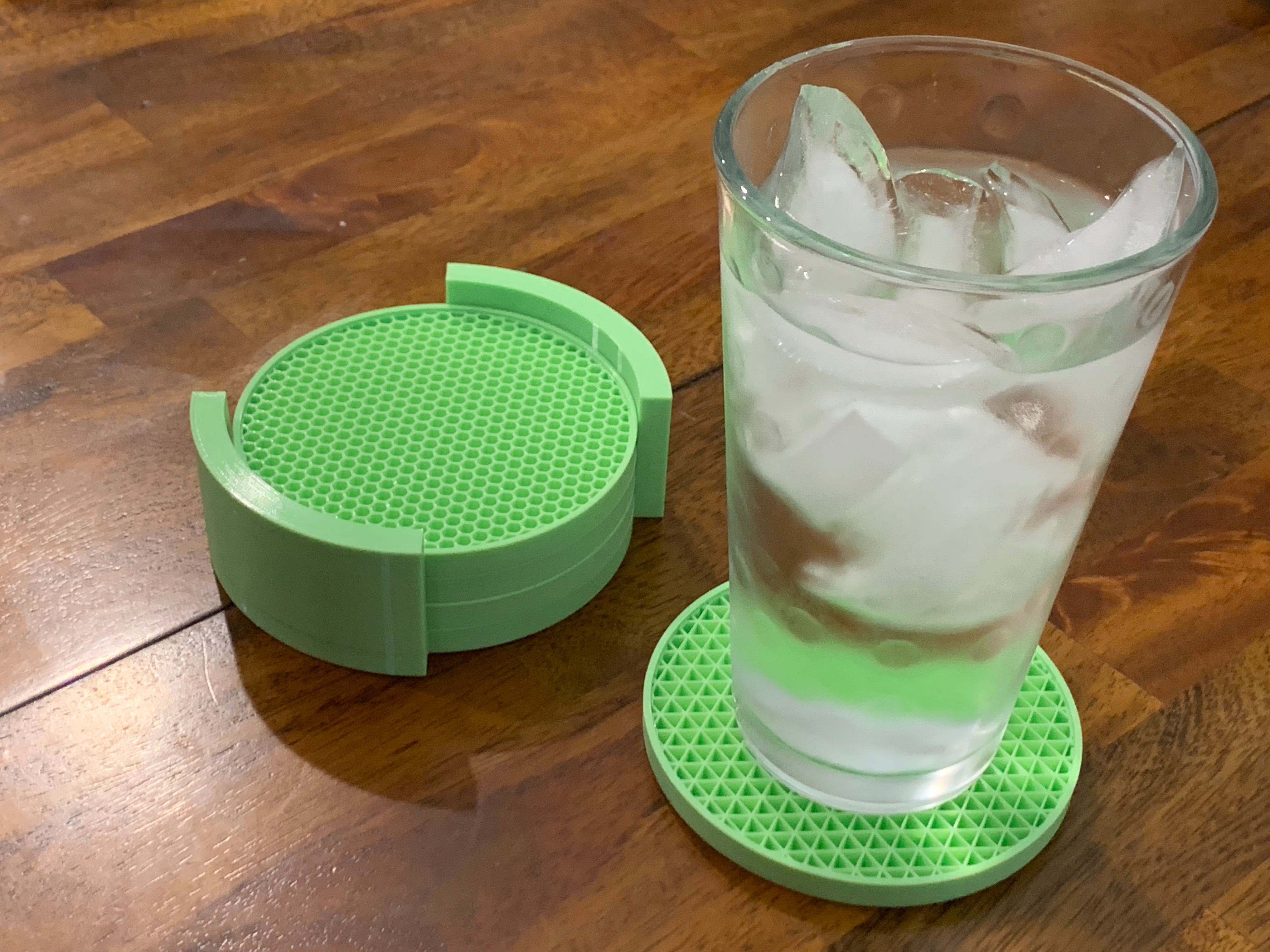 Ce set se compose de sous-verres et d'un support pour ceux-ci. Les sous-verres sont conçus pour protéger les tables en bois de la condensation provoquée par les verres froids. Chaque sous-verre est imprimé avec un motif de remplissage unique, ce qui vous permet d'afficher une grande variété de motifs. Les sous-verres sont également accompagnés d'un support permettant de les ranger et de les présenter facilement sur la table. Le produit contient quatre exemplaires de sous-verres, ce qui permet de remplir le support.