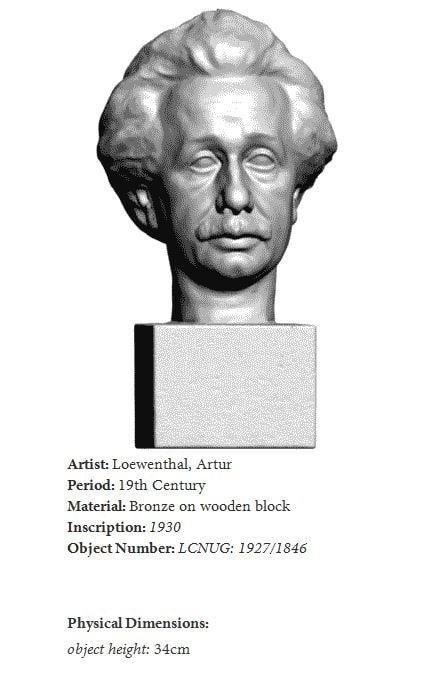 Un buste d'Albert Einstein scanné en 3D, qui a déjà été exposé à l'Usher Gallery et à The Collection à Lincoln, au Royaume-Uni. Le buste est une reproduction exacte de la sculpture en bronze originale, créée par Artur Loewenthal en 1930.