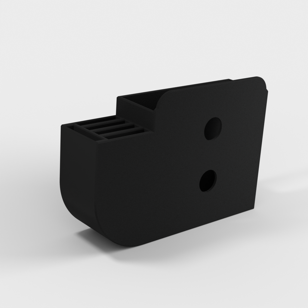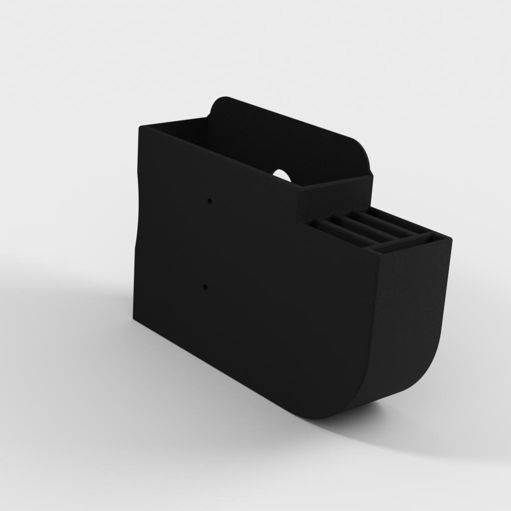 Ce support est conçu spécifiquement pour l'unité DAC SteelSeries Arctis Pro Wireless, et offre une solution pratique pour garder votre bureau organisé. Il permet de monter votre DAC en toute sécurité sous le bureau, ce qui libère de l'espace précieux et maintient les câbles hors de vue. En plus de maintenir le DAC en place, le support comprend également des fentes dédiées pour ranger les batteries supplémentaires, garantissant que vous avez toujours de l'énergie prête pour votre casque SteelSeries Arctis Pro Wireless. L'appareil est facilement accessible, même lorsqu'il est monté sous le bureau, ce qui rend les réglages et le chargement faciles.