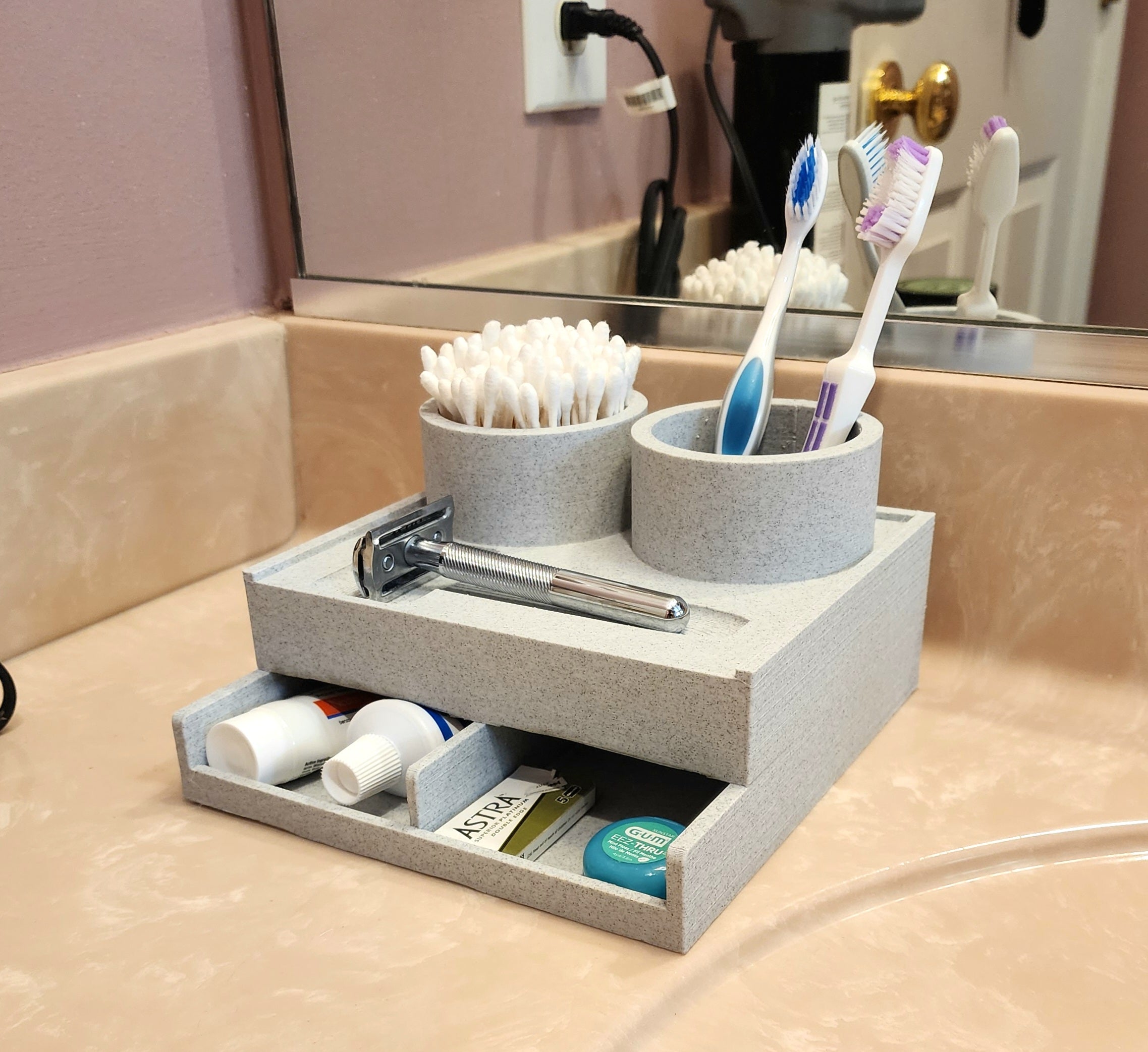 - Rangement intégré pour brosses à dents, rasoir et cotons-tiges