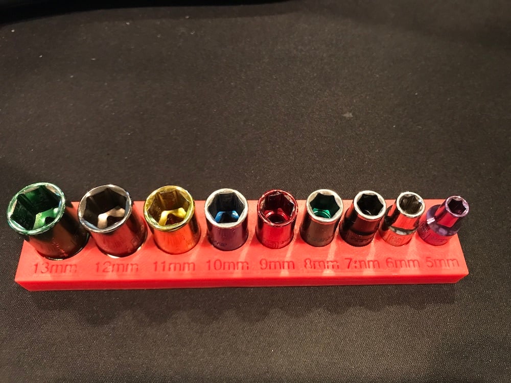 Cet organiseur pratique est conçu pour garder vos douilles métriques d'entraînement 1/4" organisées et facilement accessibles. Il peut stocker en toute sécurité des douilles de tailles allant de 5 mm à 13 mm, ce qui le rend idéal pour de nombreux ensembles de douilles courants. Avec des fentes intégrées pour les aimants en néodyme N52 de 6 mm x 1,5 mm, vos douilles sont solidement fixées, de sorte qu'elles restent en place même en cas de stockage vertical ou si elles sont maintenues à l'envers. L'organiseur est compatible avec les marques populaires telles que Craftsman et Harbor Freight. Il contribue à un lieu de travail plus clair, où vous pouvez rapidement trouver la bonne douille lorsque vous en avez besoin, et réduit le risque de perdre vos douilles.