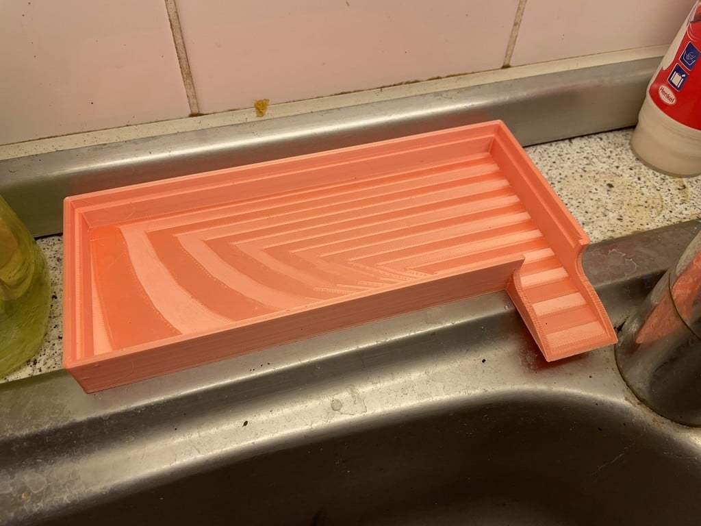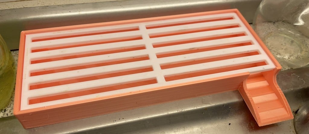 Les dimensions de l'organisateur sont bien étudiées pour s'adapter à la plupart des éviers de cuisine standard. La base mesure 8 cm x 20 cm x 2 cm et comprend un drain de 3,5 cm de long et 3 cm de large. Le rack lui-même mesure 7,4 cm x 19,4 cm et le porte-bouteille a une hauteur de 13,8 cm, ce qui offre amplement d'espace même pour les bouteilles plus hautes.