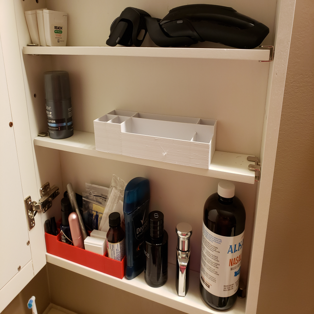 Cet organiseur pratique est conçu pour maintenir efficacement les petits objets ensemble et organisés, en particulier dans les armoires à pharmacie. Il aide à empêcher le contenu de tomber lors de l'ouverture de l'armoire et garantit que tout est facile à trouver et à accéder. En plus de son utilisation dans l'armoire à pharmacie, l'organisateur convient également pour créer de l'ordre sur les bureaux, les étagères ou autres plans de travail où il est nécessaire de rassembler de petits objets. Avec cet organisateur, vous pouvez facilement créer un environnement ordonné et clair dans différentes pièces.