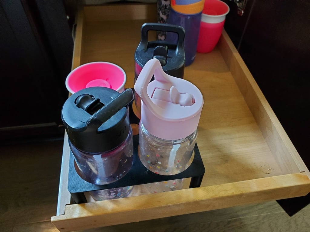 Gardez les gourdes des enfants bien rangées avec ce porte-gourde pratique, conçu pour créer de l'ordre dans les tiroirs et les placards. Cet organisateur peut contenir jusqu'à quatre bouteilles, et sa conception robuste garantit qu'elles restent stables et ne roulent pas, même lorsque le tiroir est tiré rapidement. Avec un diamètre de cercle de 80 mm, le support est compatible avec de nombreuses gourdes pour enfants populaires, notamment des marques telles que Contigo et Simple Modern, ce qui en fait une solution polyvalente pour la plupart des foyers. Il est tout aussi pratique pour les bouteilles qui doivent être emportées dans la poussette lors d'une excursion que pour celles qui sont utilisées à la maison. Cette solution de rangement intelligente élimine l'encombrement et rend les bouteilles facilement accessibles, de sorte que vous n'avez pas à effectuer une "recherche de concurrents" approfondie pour trouver l'organisateur idéal. Si vous avez un plus grand nombre de bouteilles, plusieurs unités peuvent facilement être placées côte à côte pour augmenter la capacité de stockage. Un complément idéal pour une cuisine ou une chambre d'enfant bien rangée.