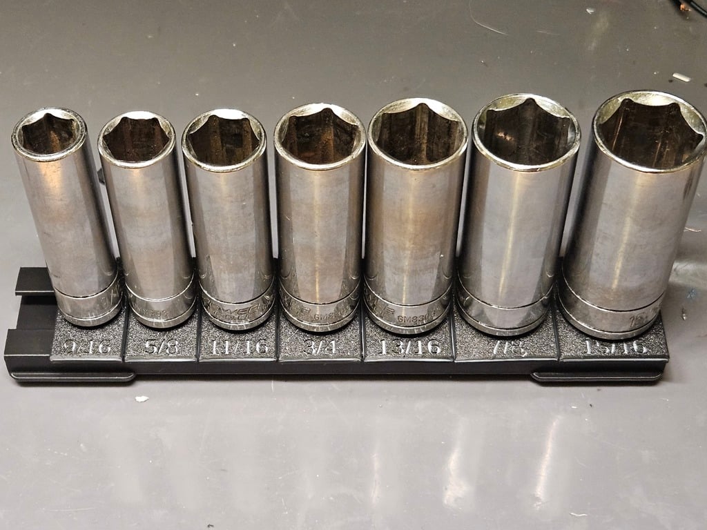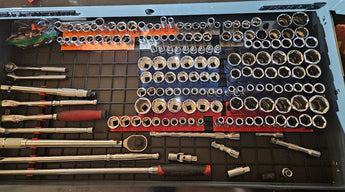 La configuration modulaire vous donne une totale liberté pour organiser et réorganiser vos rangées de douilles afin qu'elles correspondent exactement à votre collection et à vos préférences. Grâce aux marquages de taille clairs sur chaque support, vous pouvez rapidement identifier la bonne taille sous n'importe quel angle, ce qui vous fait gagner un temps précieux pendant le travail.