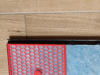 Le matériau filtrant est solidement fixé en place avec une grille robuste et des broches associées. Pour une stabilité optimale, il est recommandé d'utiliser deux points de fixation par filtre. Le produit est fabriqué en matériau ABS, connu pour sa durabilité, ce qui assure une longue durée de vie au filtre de remplacement.