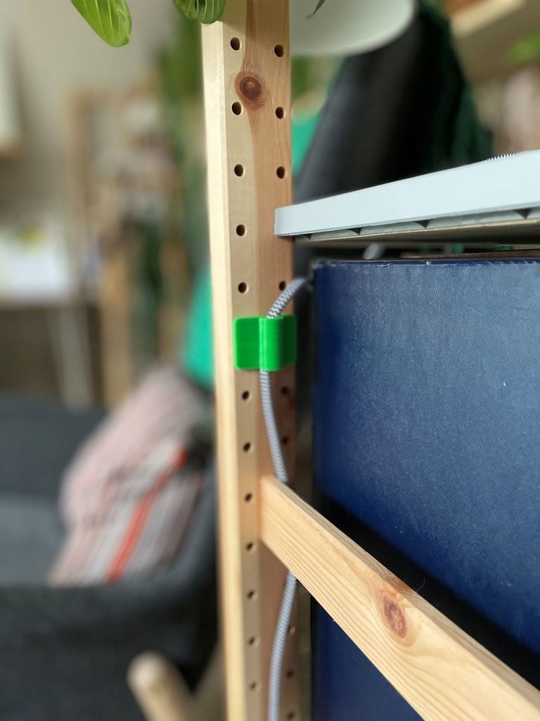 Ces serre-câbles sont conçus pour améliorer l'organisation des câbles en conjonction avec les systèmes d'étagères IKEA IVAR. L'ensemble comprend trois variantes différentes de serre-câbles, qui offrent des solutions flexibles pour la gestion des câbles. Deux des clips sont conçus pour s'insérer dans les trous des montants latéraux IVAR, dont l'un prend en charge le guidage horizontal des câbles et l'autre le guidage vertical. Le troisième clip se monte sur le bord d'une étagère IVAR, offrant ainsi une option supplémentaire pour fixer les câbles. En utilisant ces clips, vous pouvez obtenir une solution de stockage plus structurée et ordonnée, car les câbles lâches sont collectés et acheminés discrètement le long de l'étagère.