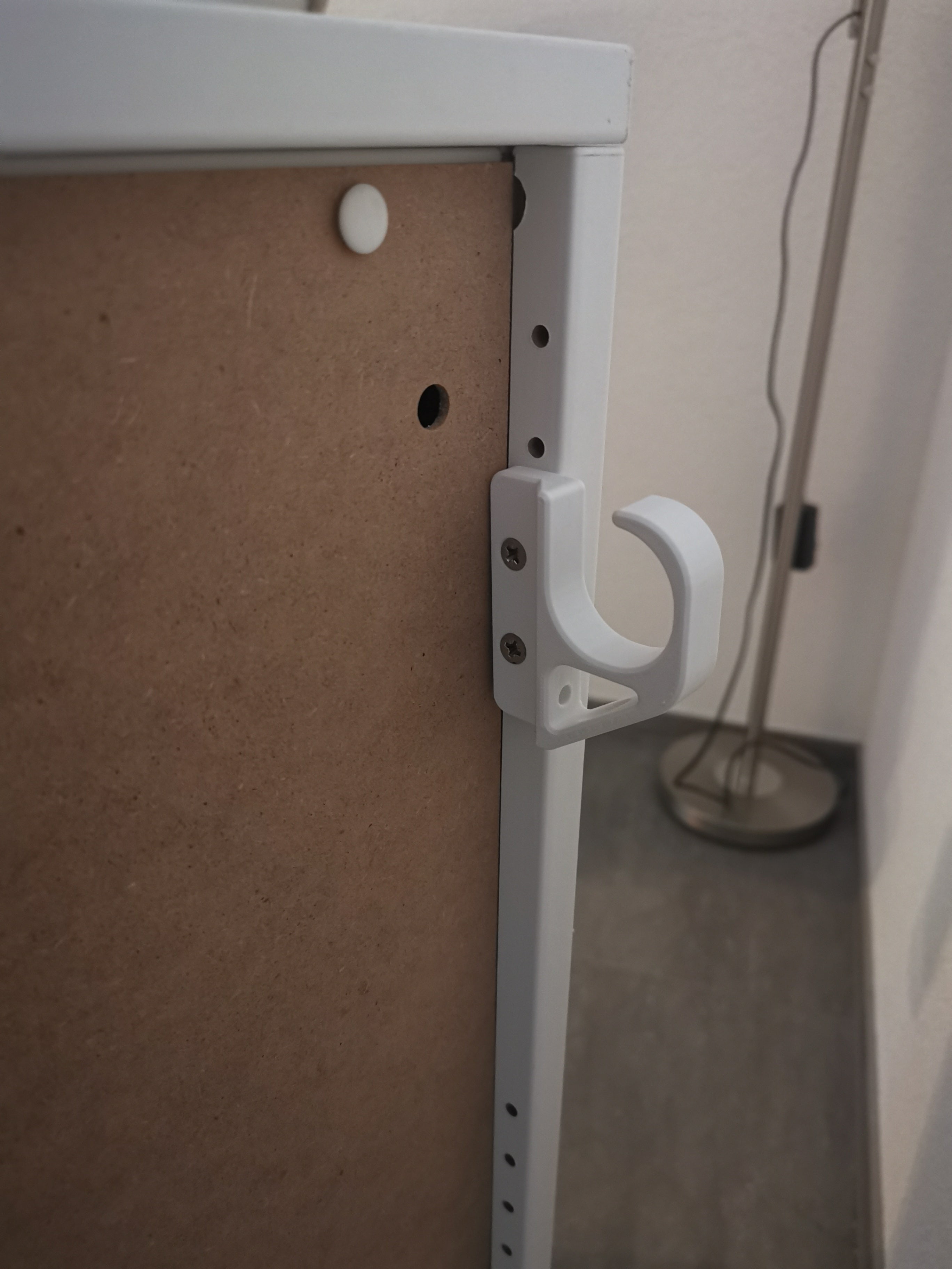 Le crochet est spécialement adapté à l'arrière des meubles IKEA Platsa, où l'espacement des trous correspond exactement pour une intégration transparente. Cela facilite la création d'une expression ordonnée autour de vos meubles et équipements.