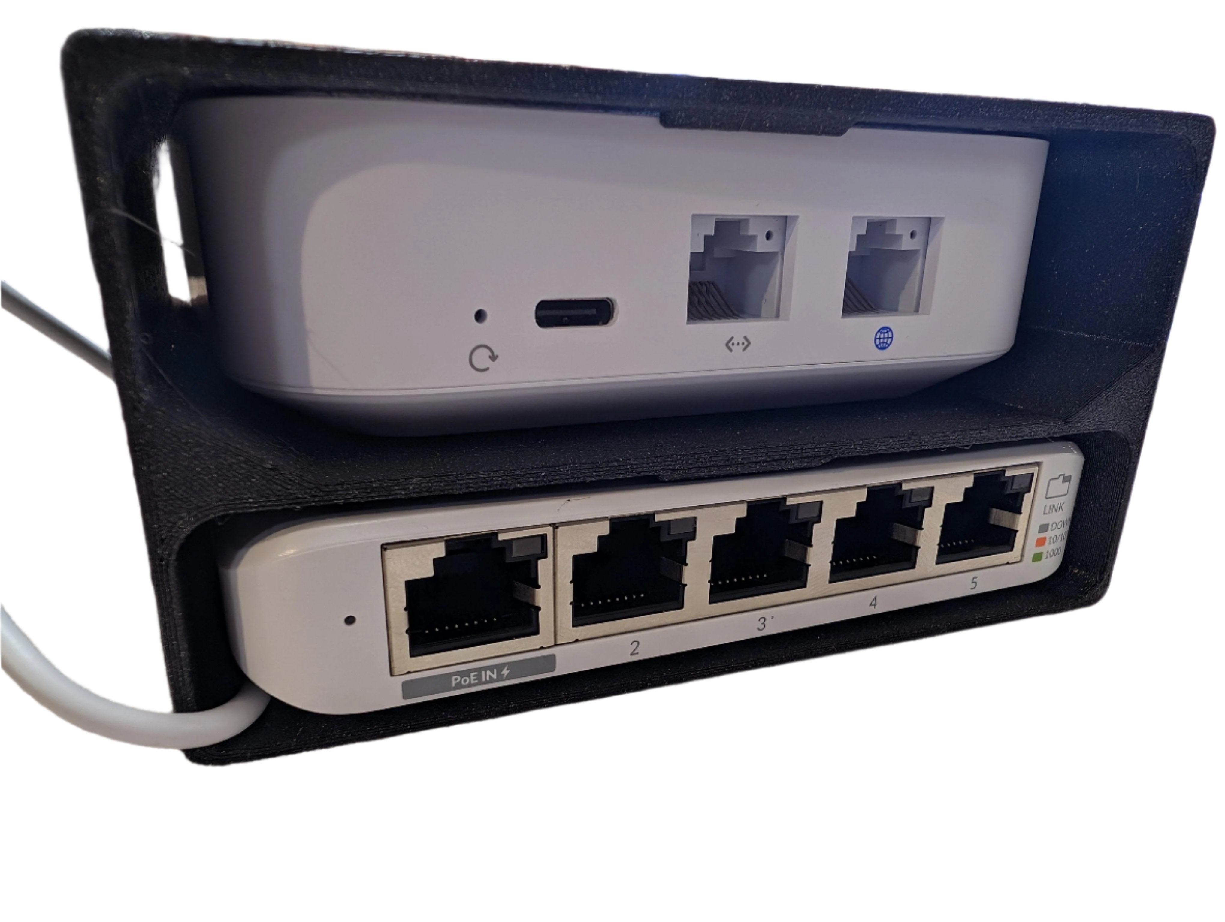 Présentez votre passerelle Unifi UX et votre switch Unifi Flex Mini à 5 ports de manière organisée et élégante avec cette étagère pratique. Conçue pour maintenir vos appareils réseau en toute sécurité, l'étagère assure que le Unifi UX s'emboîte en douceur à sa place, avec une découpe en haut pour éviter l'accumulation de chaleur et les interférences wifi. Le Unifi Flex Mini utilise un canal plus large à gauche pour permettre le raccordement du câble d'alimentation USBC, ce qui rend l'installation facile et sans tracas.