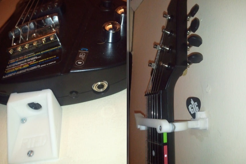 - Hjælper med at frigøre plads og organisere dit spilområde ved at flytte guitaren op på væggen.