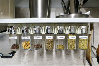 Ce porte-épices pratique est conçu pour optimiser l'espace dans votre cuisine. Il se monte facilement sous une étagère, libérant ainsi un espace précieux sur le plan de travail ou dans les placards. Le système est modulaire, vous pouvez donc déterminer vous-même le nombre de supports dont vous avez besoin et ainsi l'adapter précisément à votre collection de pots à épices. Avec la possibilité d'adapter la taille à vos bocaux spécifiques, ce porte-épices offre une solution flexible pour le rangement de vos épices, gardant vos herbes et épices organisées et facilement accessibles. Il contribue à un environnement de cuisine plus ordonné et fonctionnel.