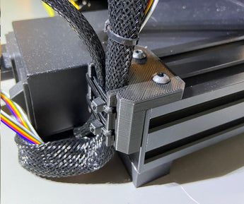 L'installation est simple et se fait via des vis et des bandes, qui fixent solidement le support à l'arrière de l'imprimante. Une pince de serrage de câble efficace qui aide à maintenir un espace de travail bien rangé et fonctionnel pour votre imprimante 3D.