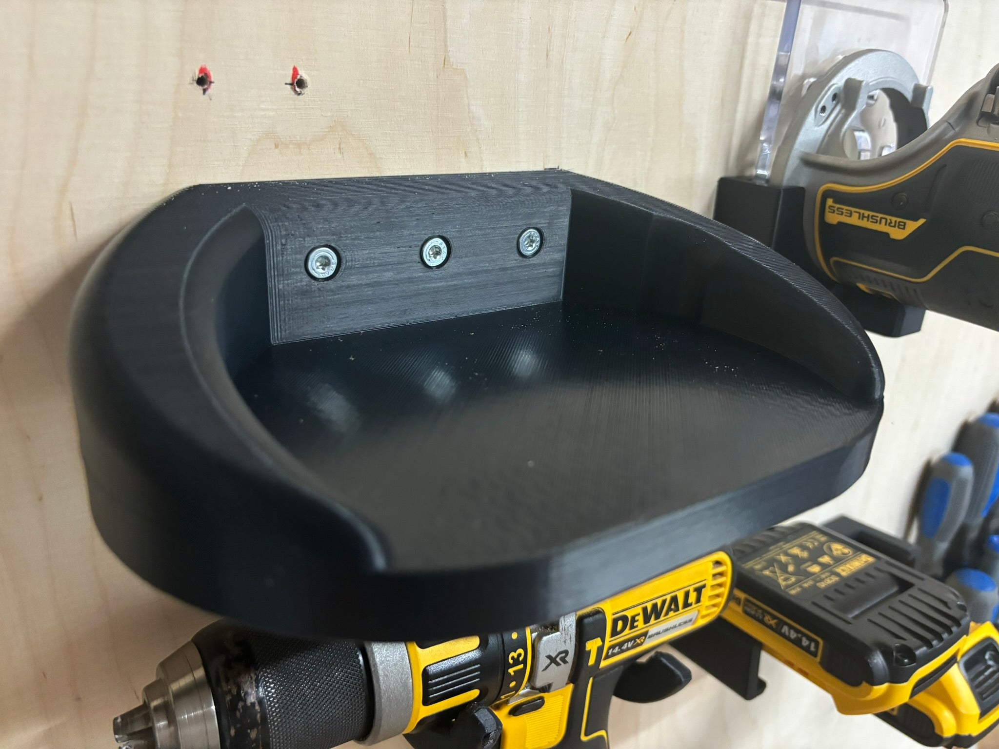 Le support peut être facilement installé au mur à l'aide de vis à tête fraisée de 4 ou 4,5 mm, permettant ainsi de garder vos outils organisés et facilement accessibles. Il est compatible avec plusieurs matériaux tels que l'ASA, le PETG et l'ABS, ce qui garantit qu'il peut être adapté à vos besoins spécifiques.