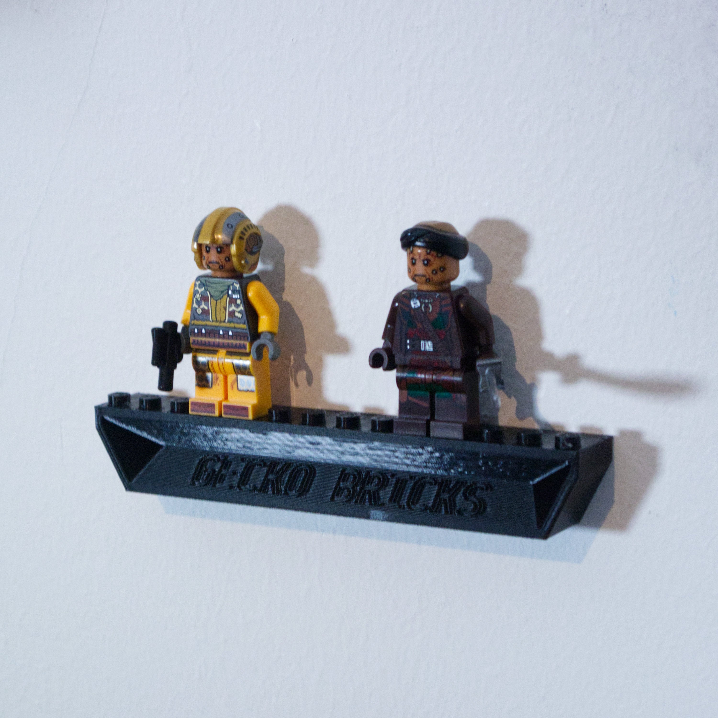 - Indeholder en separat holder til minifigurer, der monteres ved hjælp af 3M Command Strips.