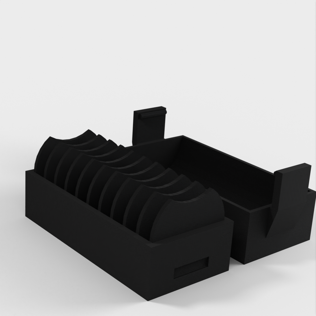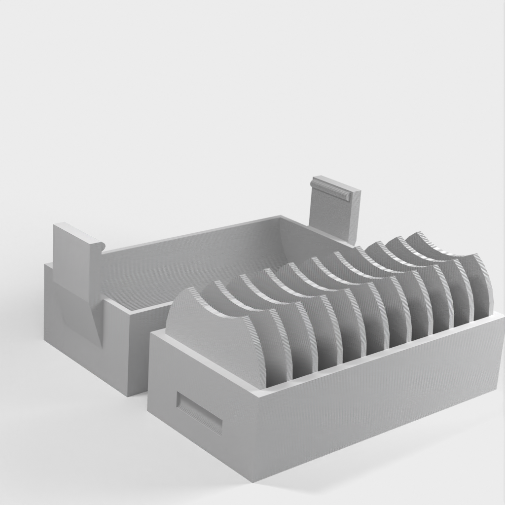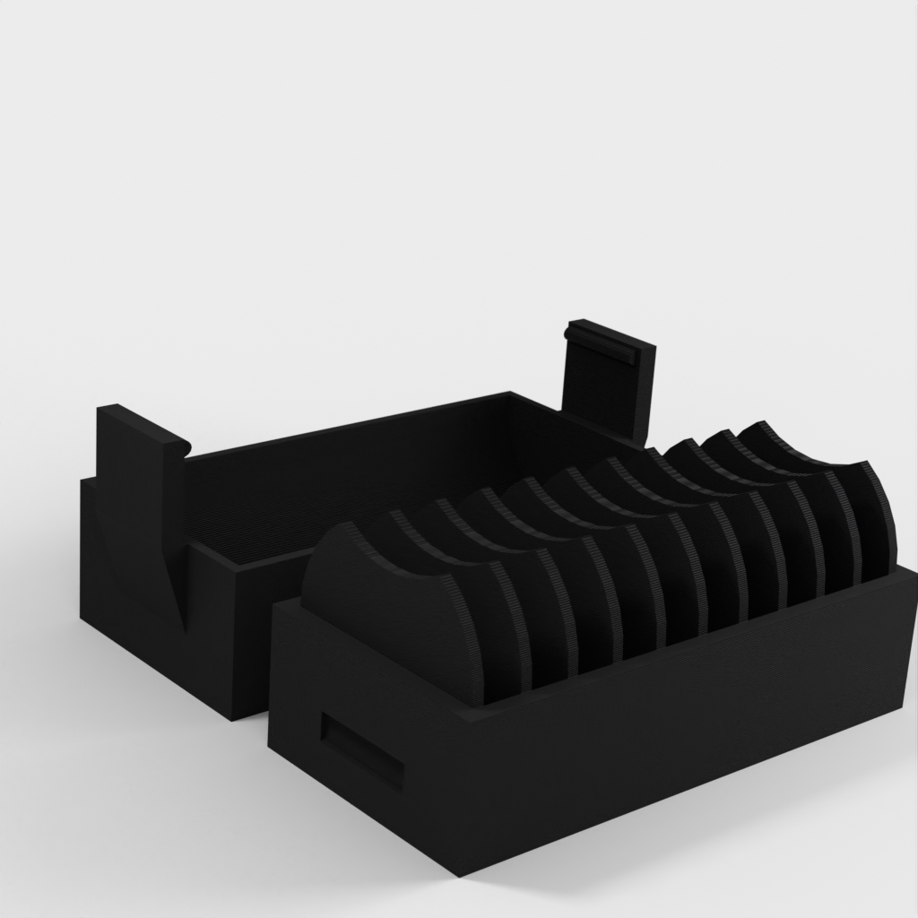 Un petit support pour 10 piles CR2032. Une nouvelle version a été ajoutée avec un couvercle qui facilite l'insertion et le retrait des piles. Le couvercle est doté d'un clip pour maintenir les piles en place en cas de chute.