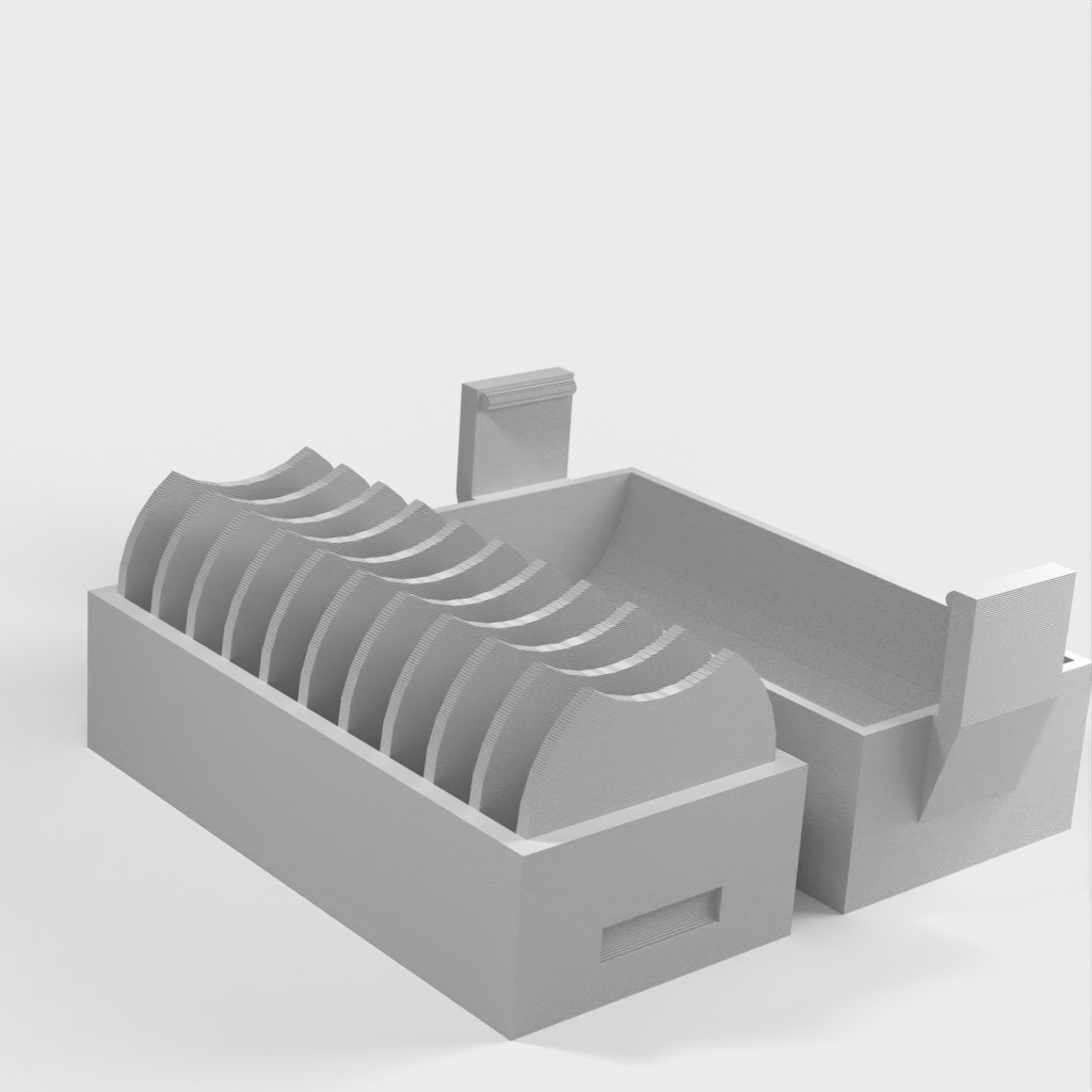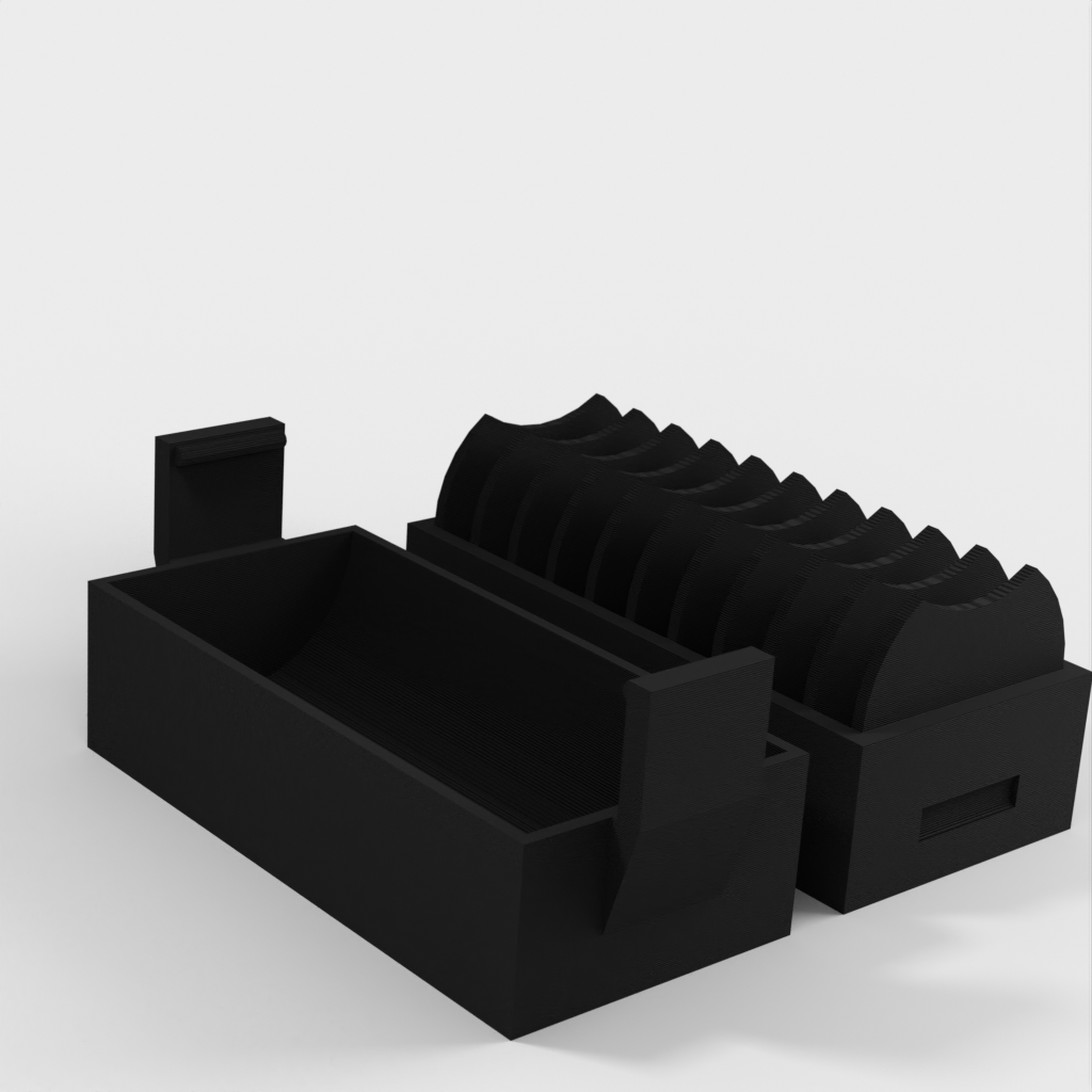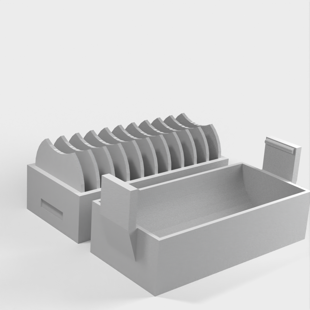 Un petit support pour 10 piles CR2032. Une nouvelle version a été ajoutée avec un couvercle qui facilite l'insertion et le retrait des piles. Le couvercle est doté d'un clip pour maintenir les piles en place en cas de chute.