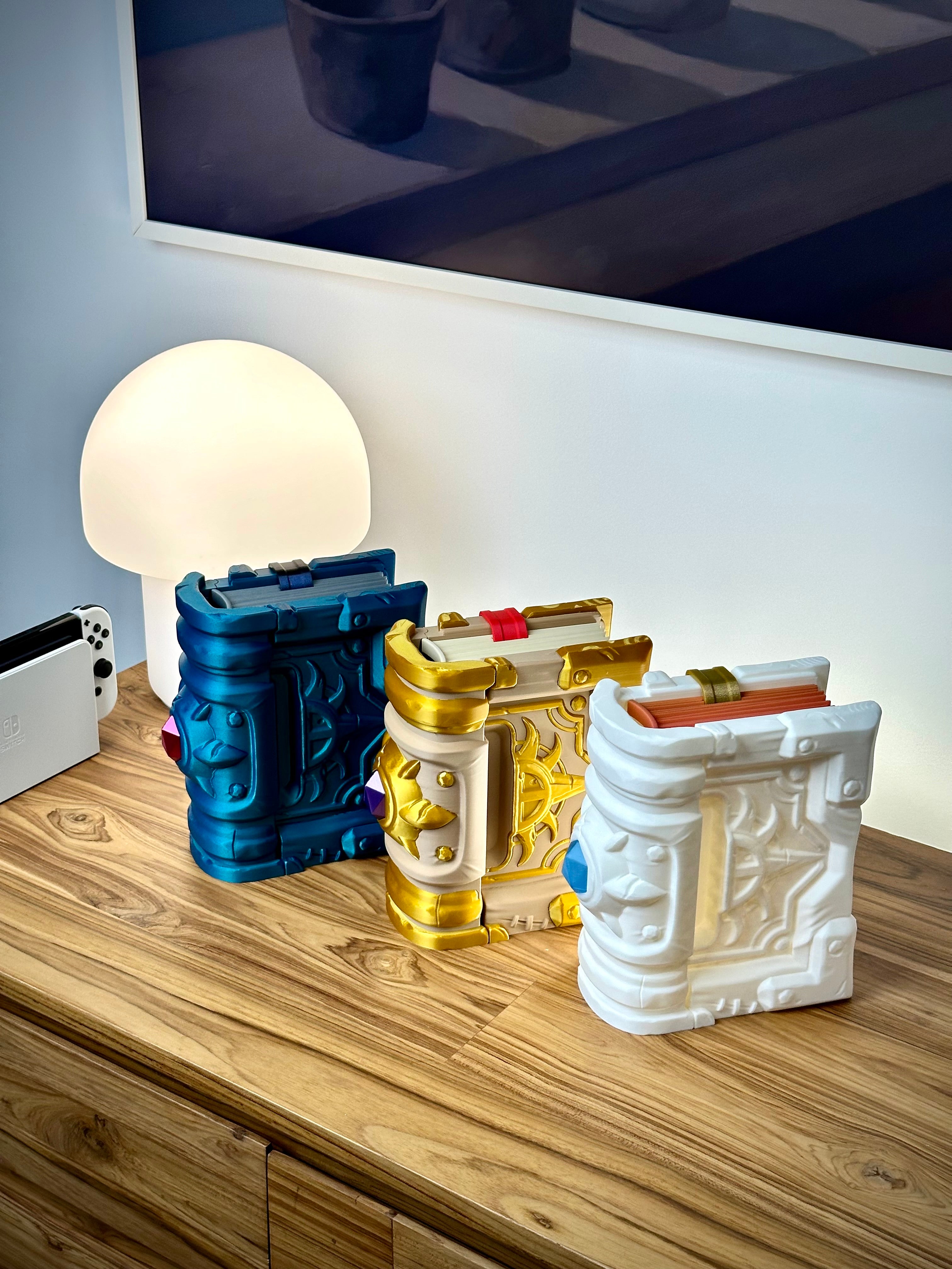 Cette boîte de jeu unique protège vos jeux Nintendo Switch tout en ajoutant un élément fantastique à votre installation. Conçue comme un livre de croisé, elle s'intègre parfaitement sur l'étagère parmi d'autres livres. Une solution de rangement élégante pour les fans de Zelda et de Warcraft.