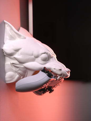• Stilfuld controller stand udformet som et detaljeret ulvehoved.