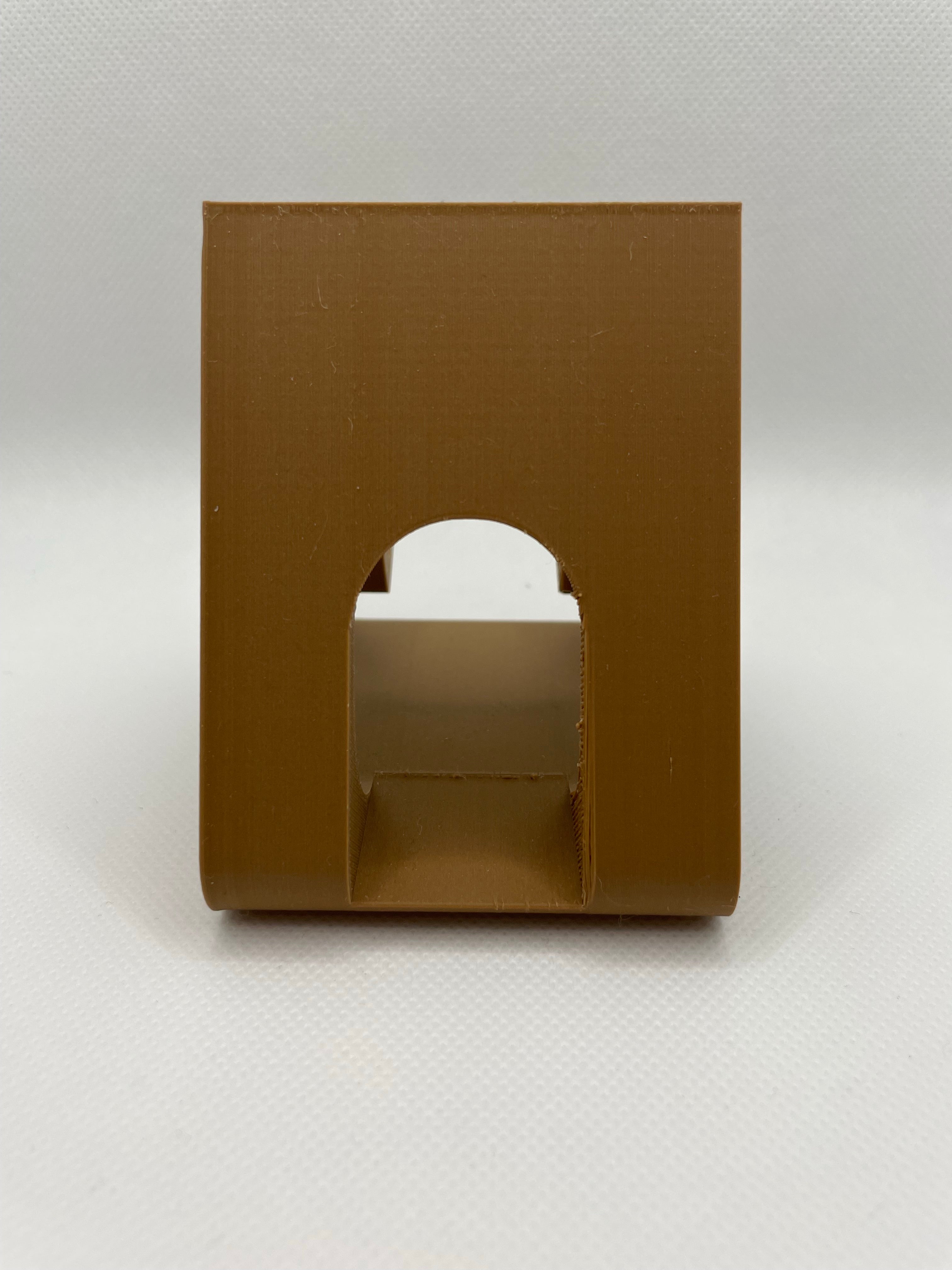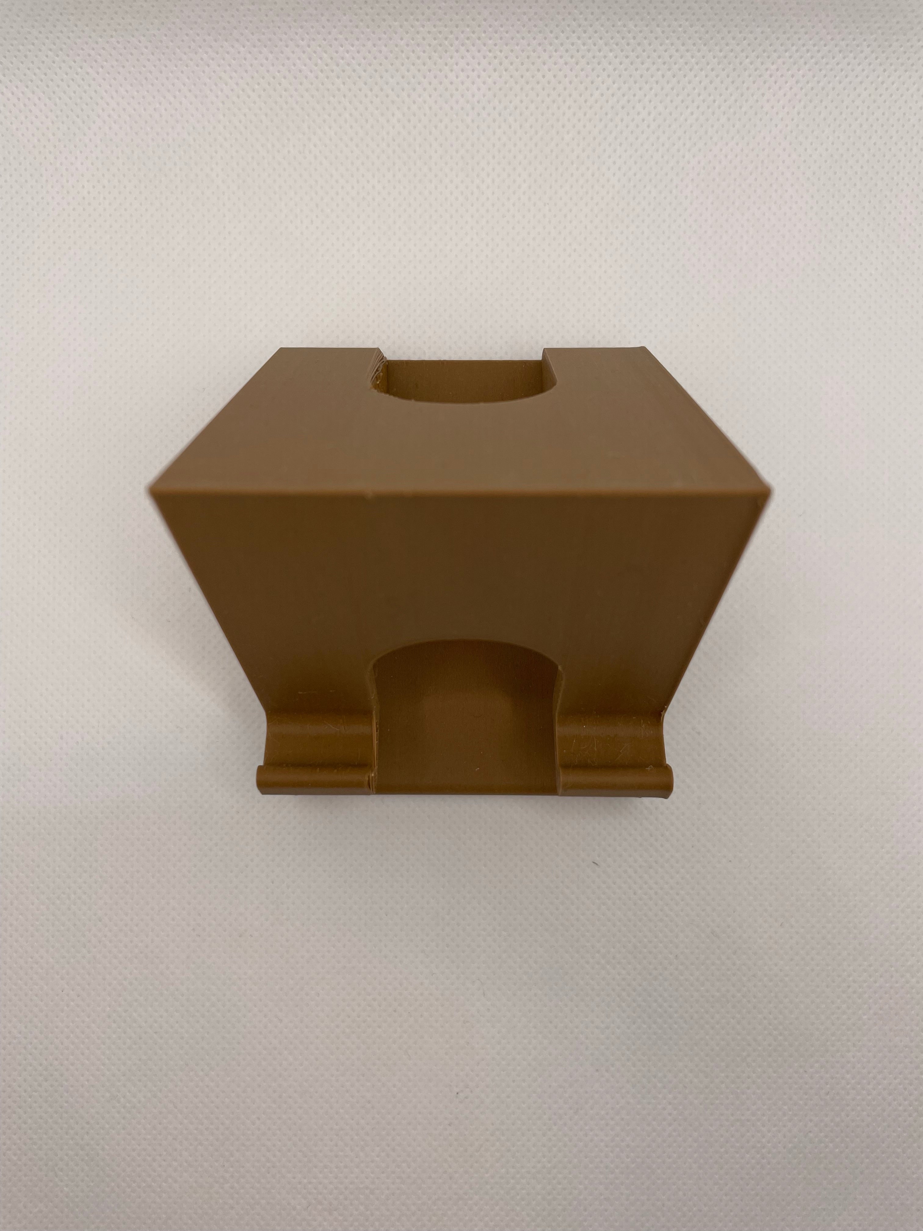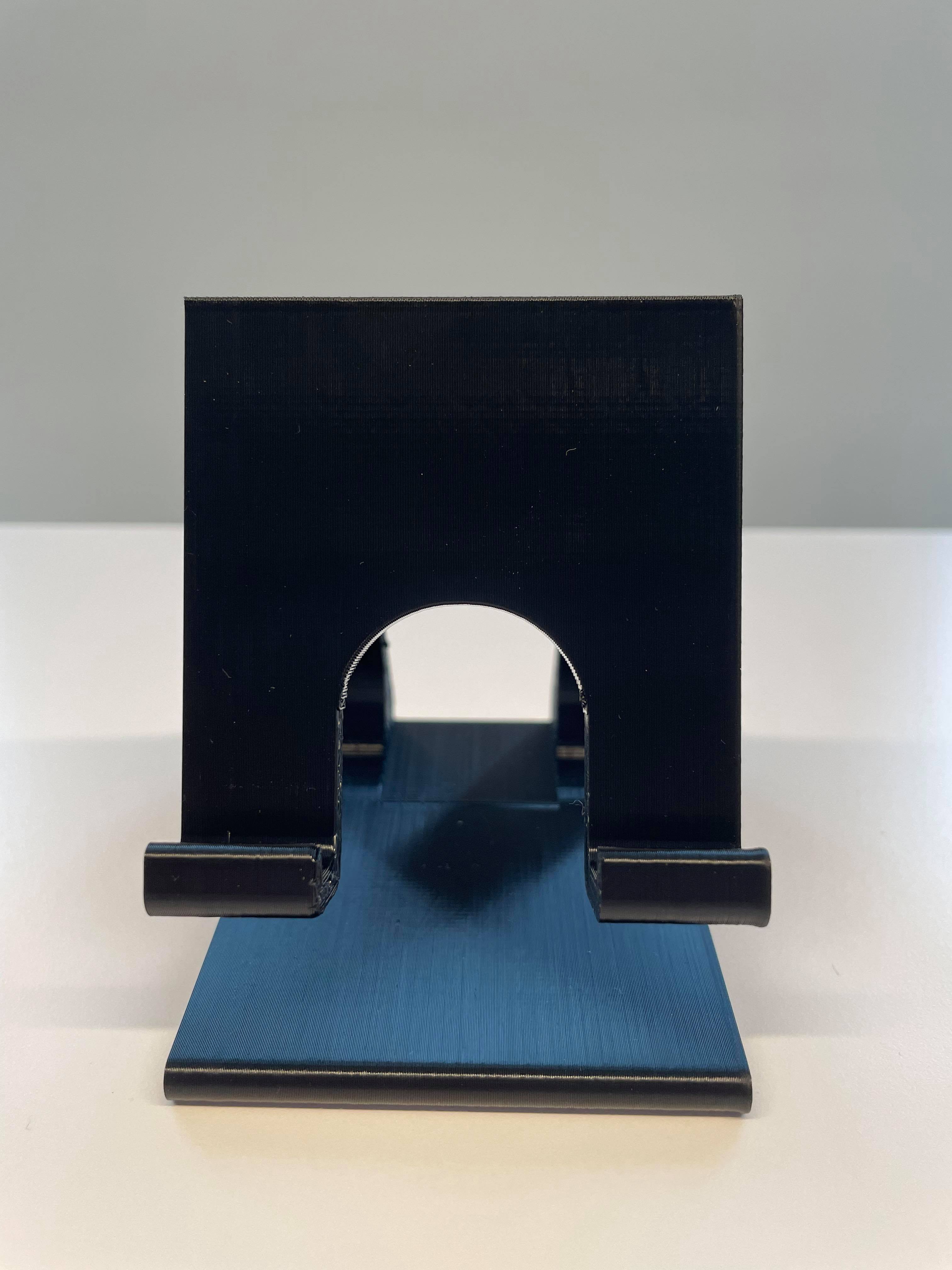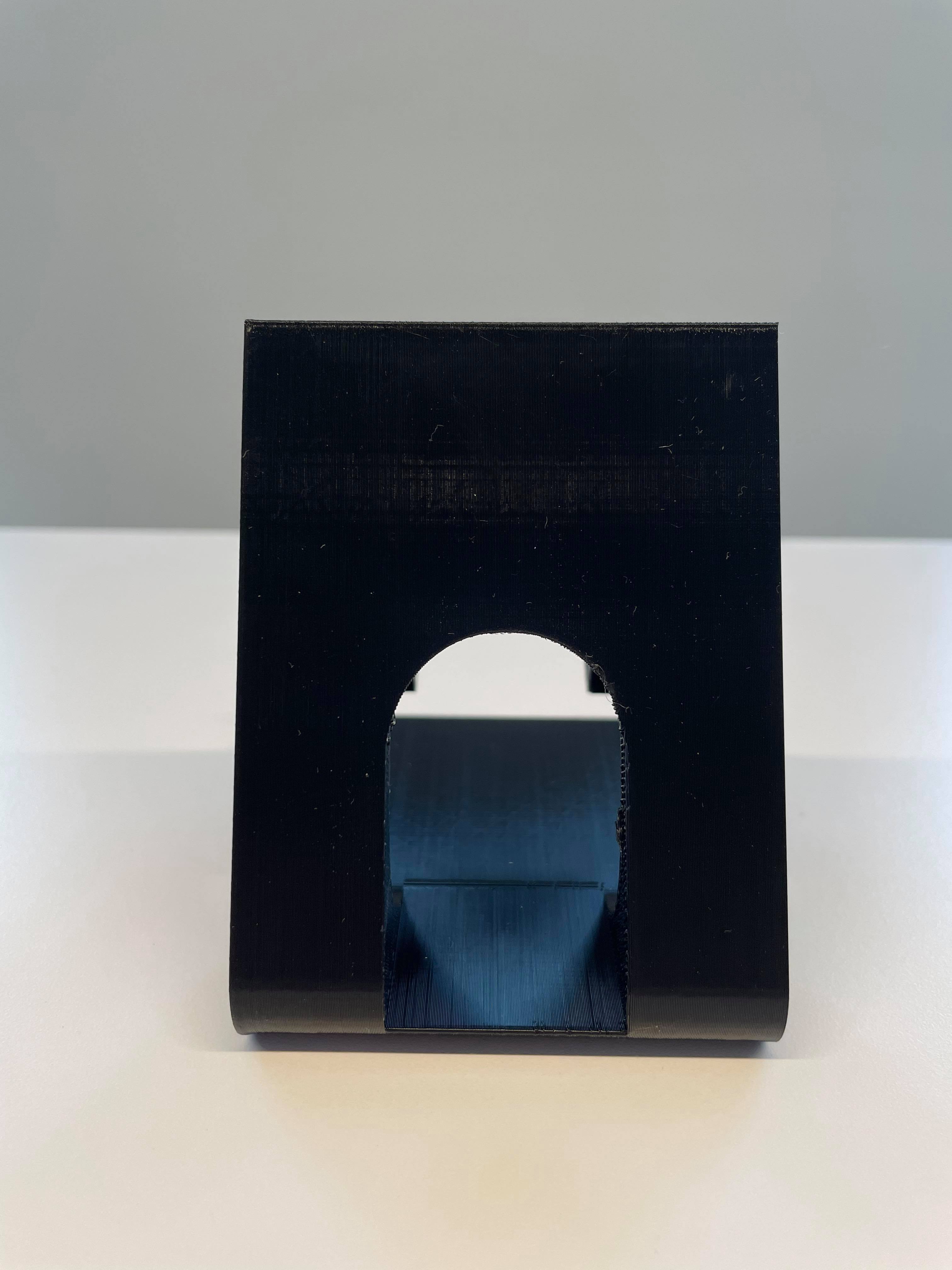 Support de téléphone universel. Le câble passe par le trou et peut ensuite être acheminé jusqu'au téléphone.