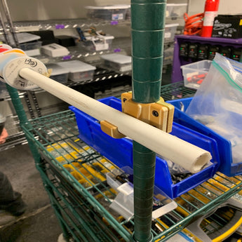 Cette pince pour étagère métallique est conçue pour créer une solution de stockage pratique et organisée pour diverses bobines de câbles. Elle permet de monter facilement un tuyau en PVC de 1/2 pouce sur un système de support, offrant ainsi une manière claire et facilement accessible de stocker vos fils. Le tuyau en PVC s'enclenche facilement dans la pince, ce qui garantit que les bobines sont maintenues en toute sécurité, tout en étant faciles à retirer et à remettre en place selon les besoins. Chaque clip de fil est conçu pour être fixé avec quatre vis à tête #8 et des écrous, assurant ainsi une installation stable et durable, que ce soit dans un atelier ou sur un chariot de quincaillerie.