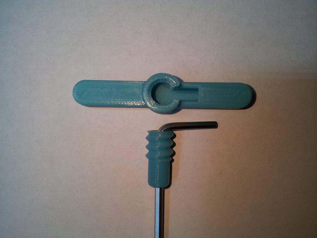 Une poignée en T simple dont l'assemblage ne nécessite pas de colle, de vis ou d'attaches de câbles supplémentaires. Taille maximale : clé hexagonale de 4 mm. La taille des tiges n'est pas critique ; il suffit de choisir une taille légèrement supérieure ou identique à celle de votre clé hexagonale. Compatible avec les 5 clés hexagonales de l'imprimante 3D Craftbot. Gardez un œil sur mes autres créations ici : http://www.thingiverse.com/Kezat/designs