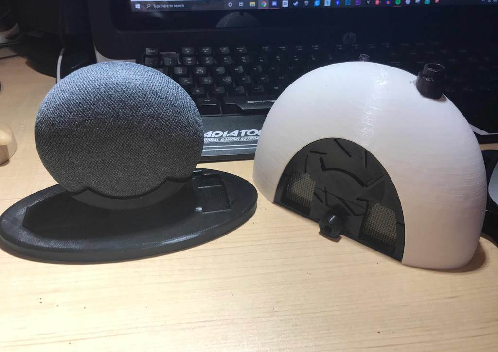 Le Portal Radio Shell pour Google Home Mini est un moyen élégant et fonctionnel d'intégrer votre haut-parleur intelligent dans votre maison. Inspiré des radios de la série de jeux Portal, cette coque ajoute une touche esthétique unique à votre installation. Elle est conçue avec un espace en bas pour le Raspberry Pi Zero WH, ce qui ouvre la possibilité d'ajouter des lumières LED ou un écran de 1,5', si vous souhaitez étendre les fonctionnalités. Pour améliorer la qualité sonore, vous pouvez envisager d'ajouter un matériau isolant à l'intérieur, ce qui aide à réduire l'écho et à améliorer l'expérience d'écoute. Que vous l'utilisiez pour la musique, l'assistance vocale ou comme partie de votre installation de jeu, cette coque ajoute une dimension unique à votre Google Home Mini.