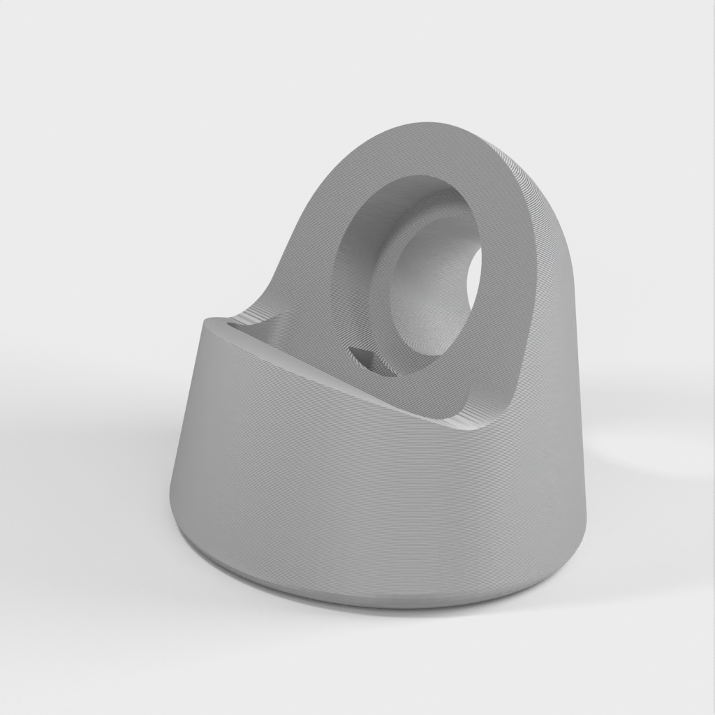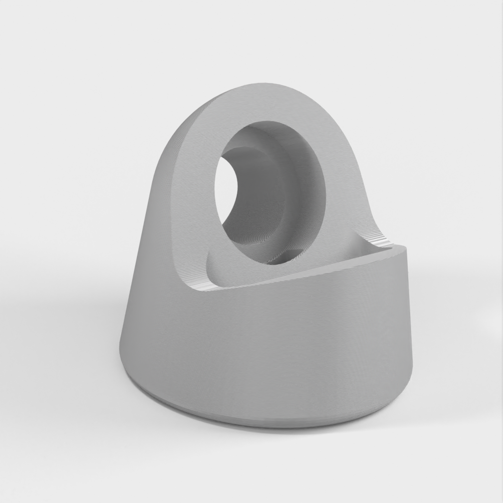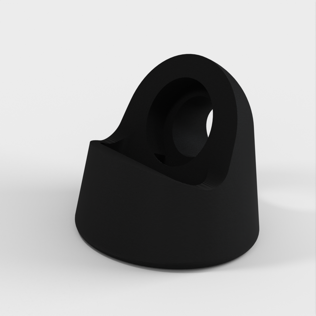 Il s'agit d'une station d'accueil pour recharger votre Apple Watch. Il est conçu de manière à ce que la courbe principale soit légèrement décalée et que le cylindre de charge soit plus grand de 0,5 mm pour permettre un ajustement plus lâche. La station d'accueil ne comporte qu'un seul passage de câble, en forme de U au lieu de trois quarts de rond. En outre, il y a un trou de 5 mm à l'arrière pour pouvoir retirer facilement le chargeur. Une version avec un canal de câble plus profond et un trou de 20 mm à l'arrière a également été ajoutée en fonction des commentaires. La version 'Big USB' convient aux câbles de l'Apple Watch version 6.