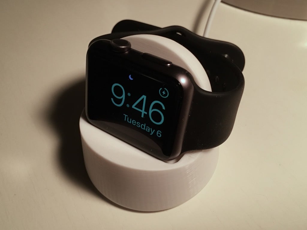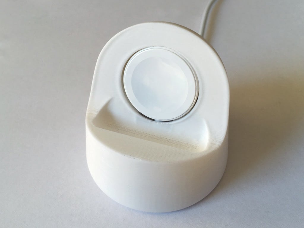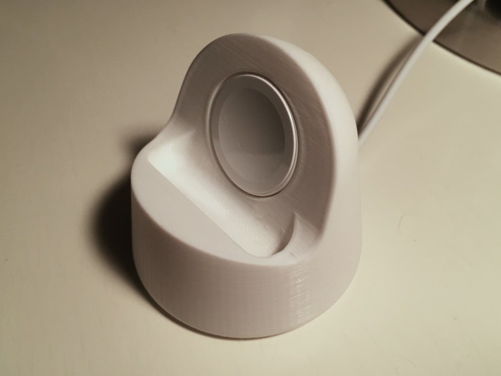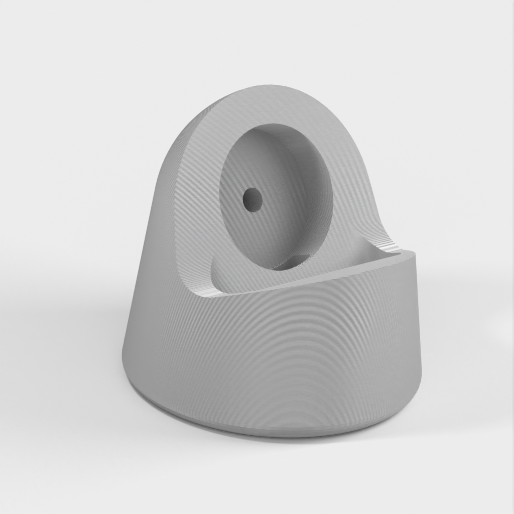 Il s'agit d'une station d'accueil pour recharger votre Apple Watch. Il est conçu de manière à ce que la courbe principale soit légèrement décalée et que le cylindre de charge soit plus grand de 0,5 mm pour permettre un ajustement plus lâche. La station d'accueil ne comporte qu'un seul passage de câble, en forme de U au lieu de trois quarts de rond. En outre, il y a un trou de 5 mm à l'arrière pour pouvoir retirer facilement le chargeur. Une version avec un canal de câble plus profond et un trou de 20 mm à l'arrière a également été ajoutée en fonction des commentaires. La version 'Big USB' convient aux câbles de l'Apple Watch version 6.