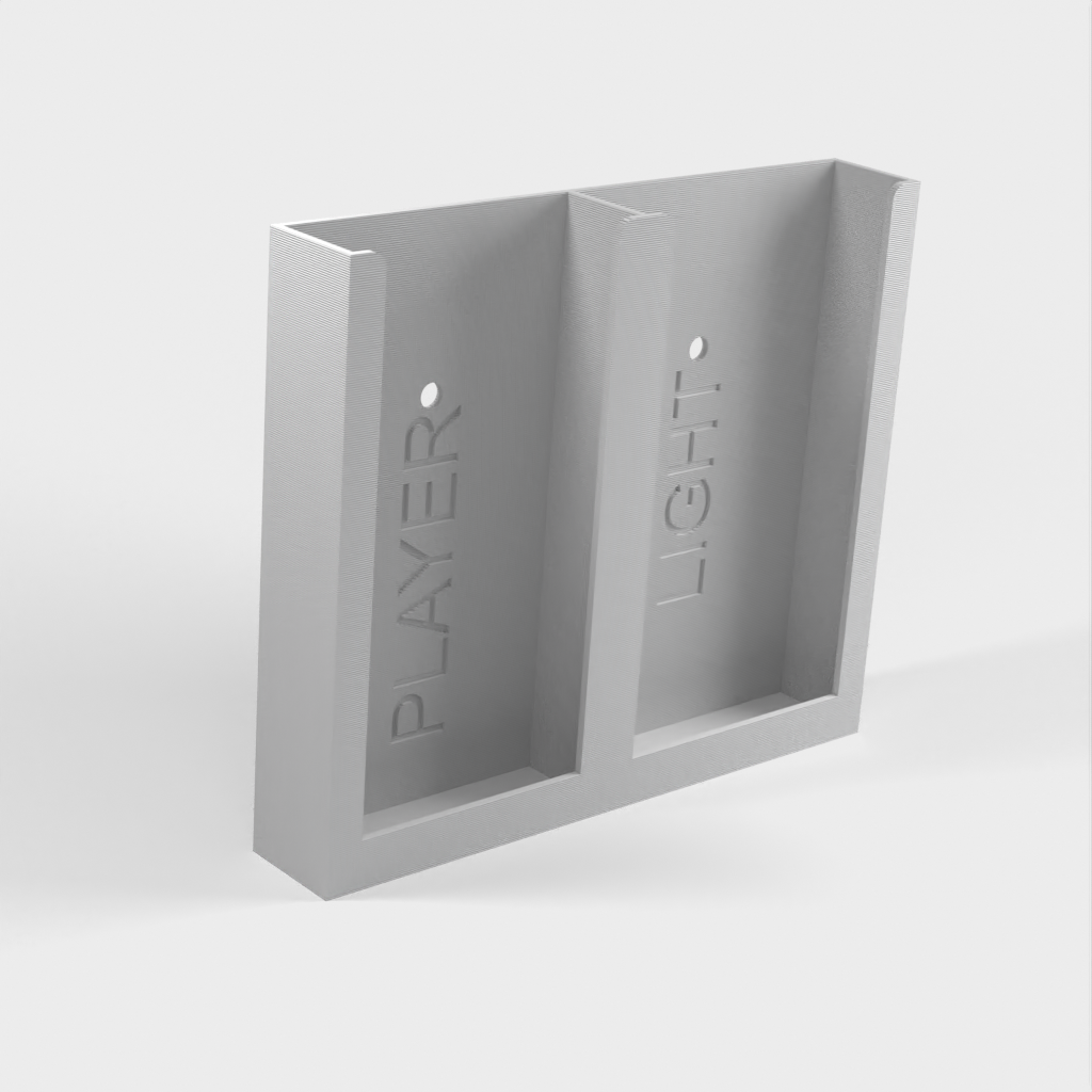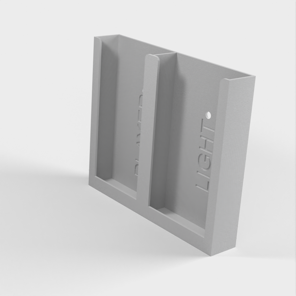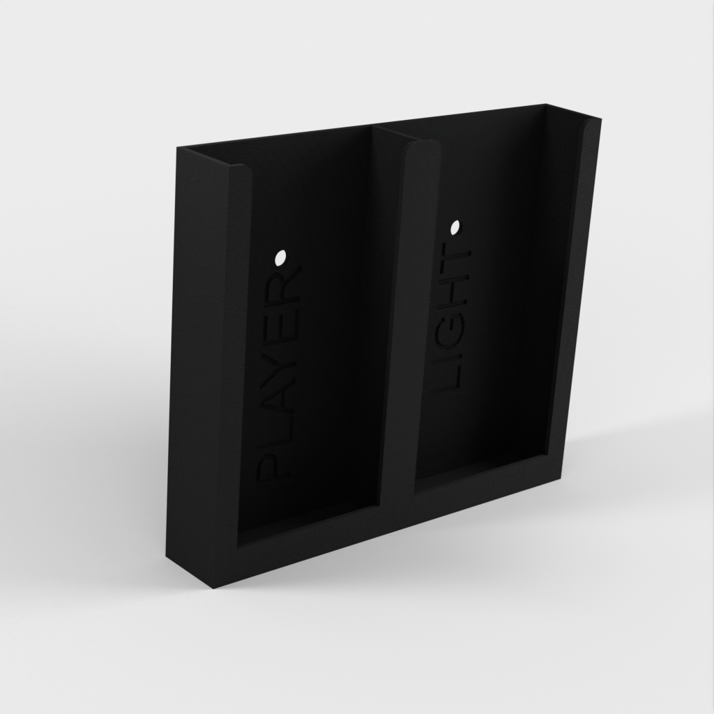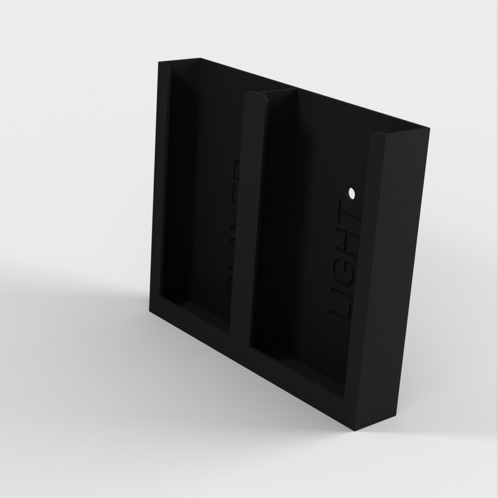 Ce support est simple et peut contenir 2 télécommandes. Il peut être installé verticalement ou horizontalement. Vous pouvez le fixer à l'aide de deux vis ou d'un ruban adhésif double face, selon ce qui convient le mieux à votre intérieur.