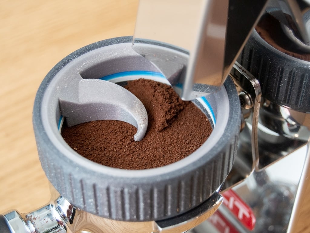 L'outil à expresso GrindDozer est conçu pour améliorer votre expérience de préparation de café en assurant une manipulation fluide et précise du marc de café dans vos courbes à expresso. Cet appareil multifonctionnel sert à la fois d'entonnoir, d'outil de dosage et de distributeur, minimisant ainsi le gaspillage et les dégâts lors du broyage et de la préparation de votre expresso.
