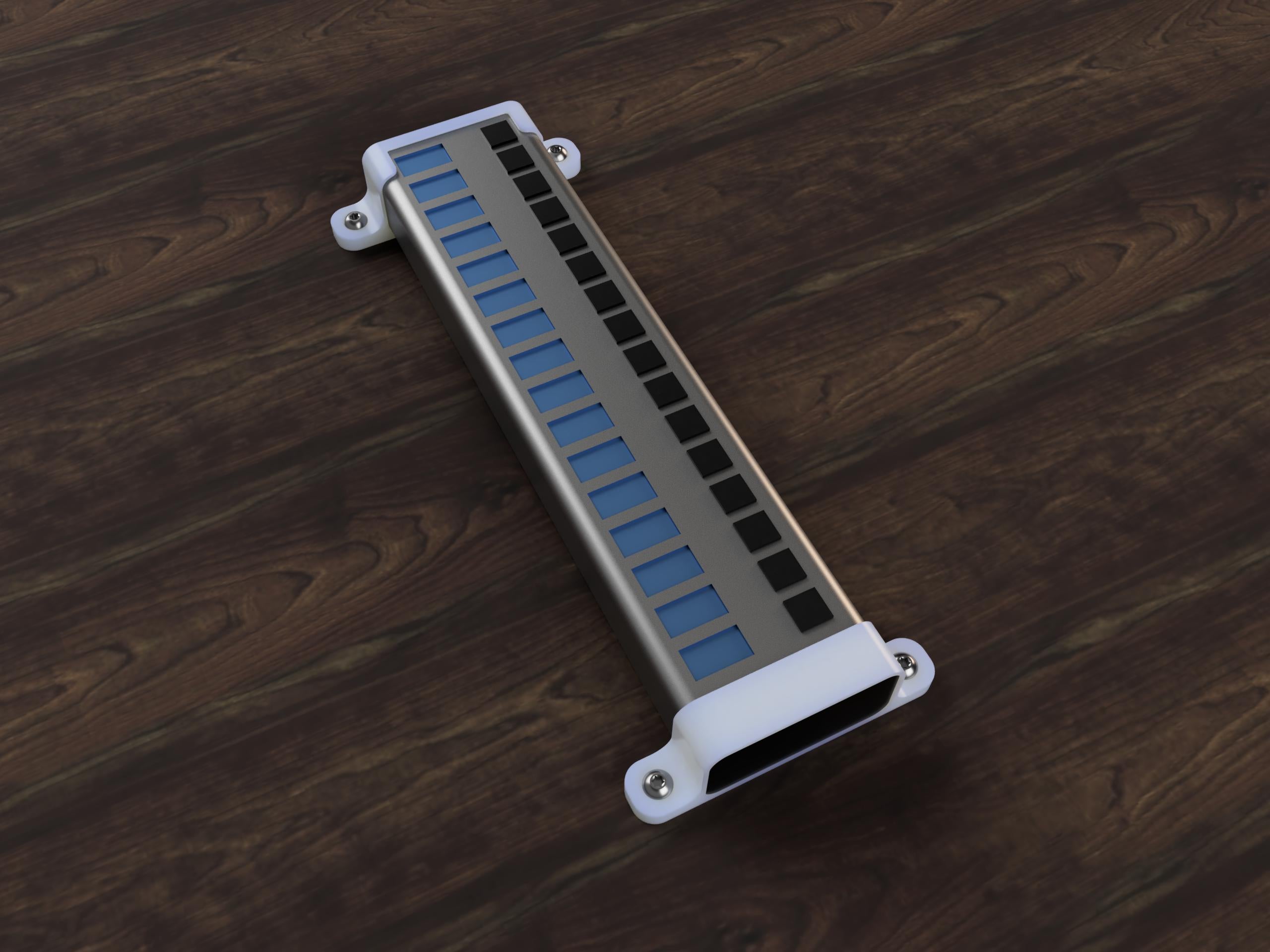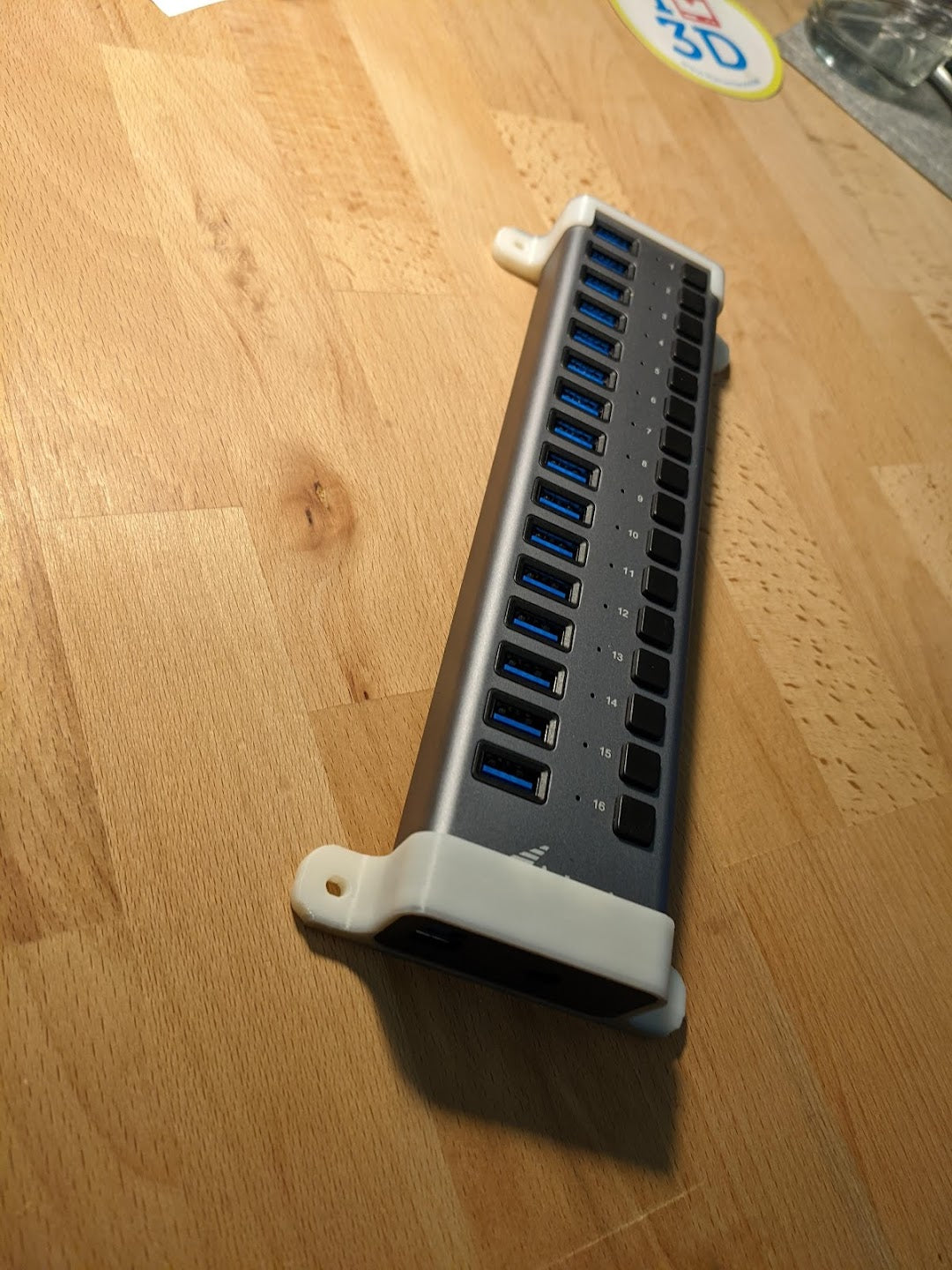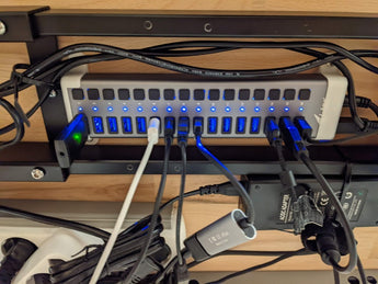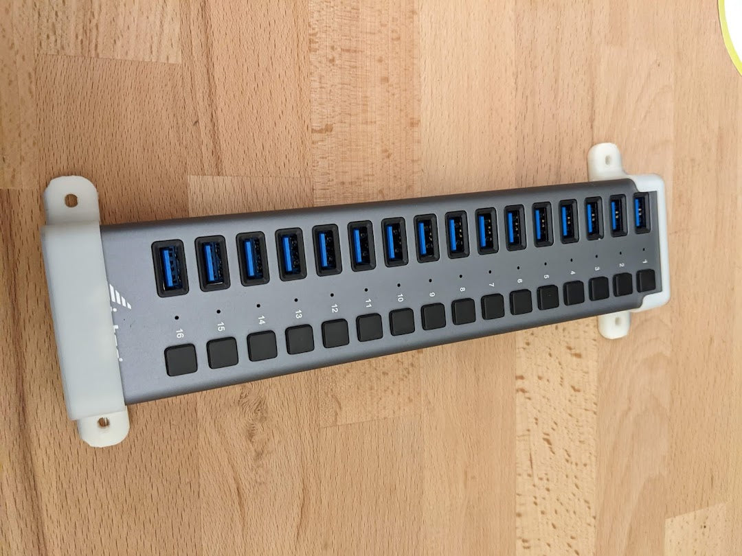 Support mural/de bureau pour le concentrateur USB i-Tec Charging. Ma propre unité est montée sous mon bureau. Possiblement compatible avec d'autres concentrateurs de dimensions 53mm x 24mm.