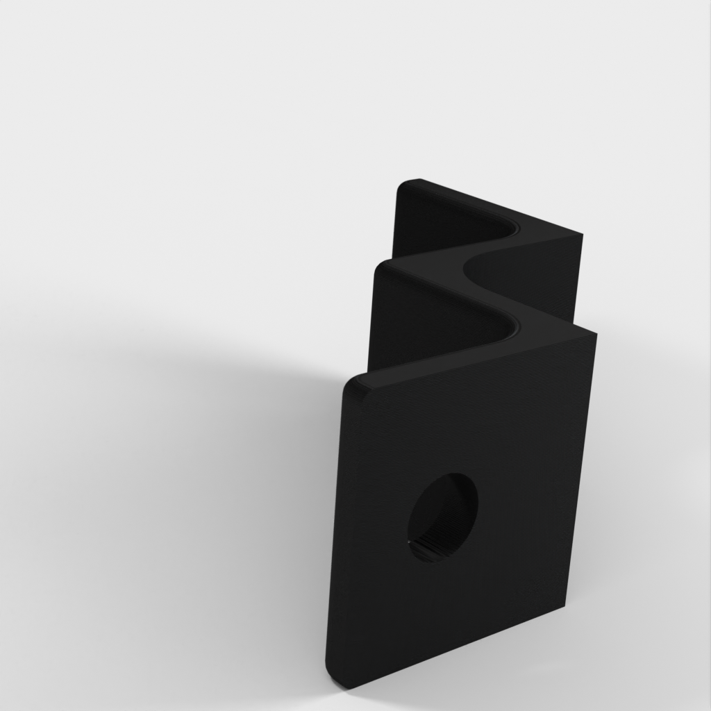 Un petit porte-câble pour les câbles d'extension d'un diamètre maximal de 7 mm. Ce produit existe en version plate et en version d'angle. Le modèle pèse à peine plus de 1g, il est donc facile à manipuler. Il est recommandé d'imprimer le porte-câble en ASA, ABS ou autre matériau durable. Aucune résolution particulièrement élevée n'est nécessaire pour l'impression.