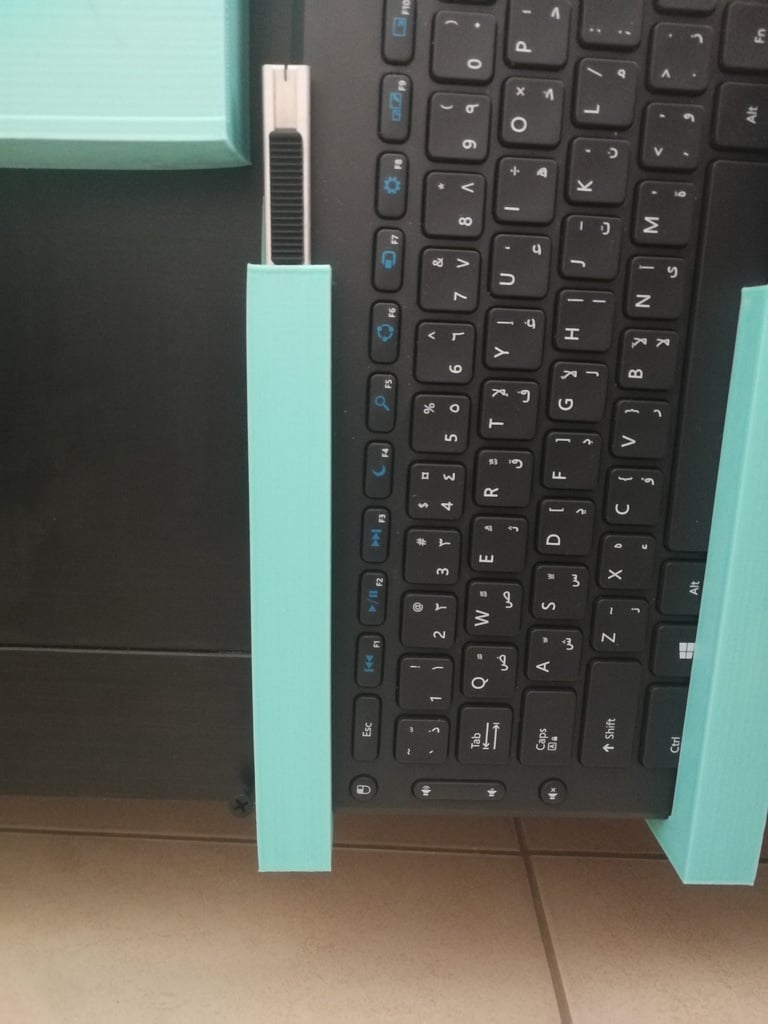 Il s'agit d'une impression en deux parties, vous pouvez donc l'ajuster pour l'adapter à n'importe quelle taille de clavier. Veuillez noter que les deux parties ne sont pas symétriques ; un côté est plus large que l'autre pour tenir compte de la forme incurvée du clavier. Vous pouvez éventuellement l'importer dans n'importe quelle application de conception 3D pour l'ajuster à vos besoins.