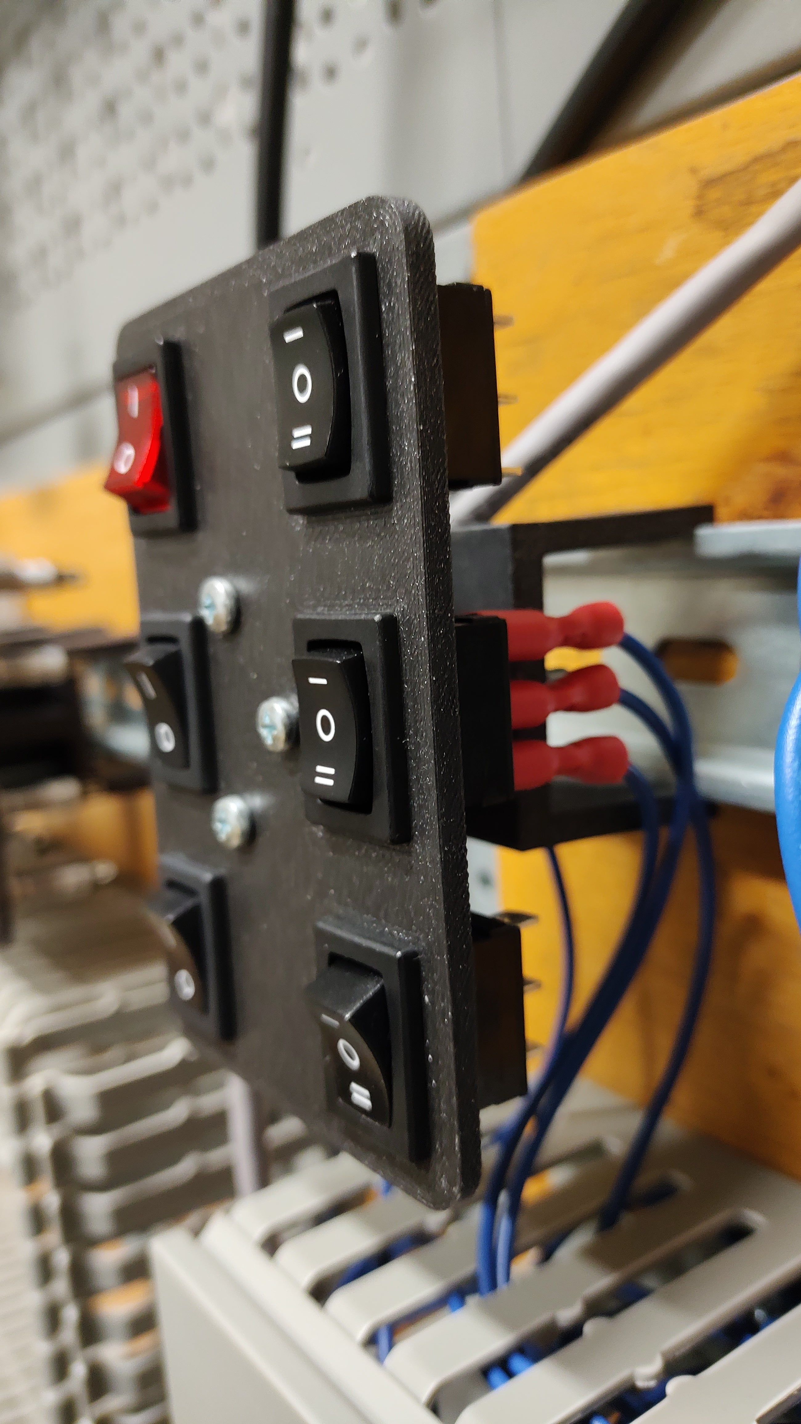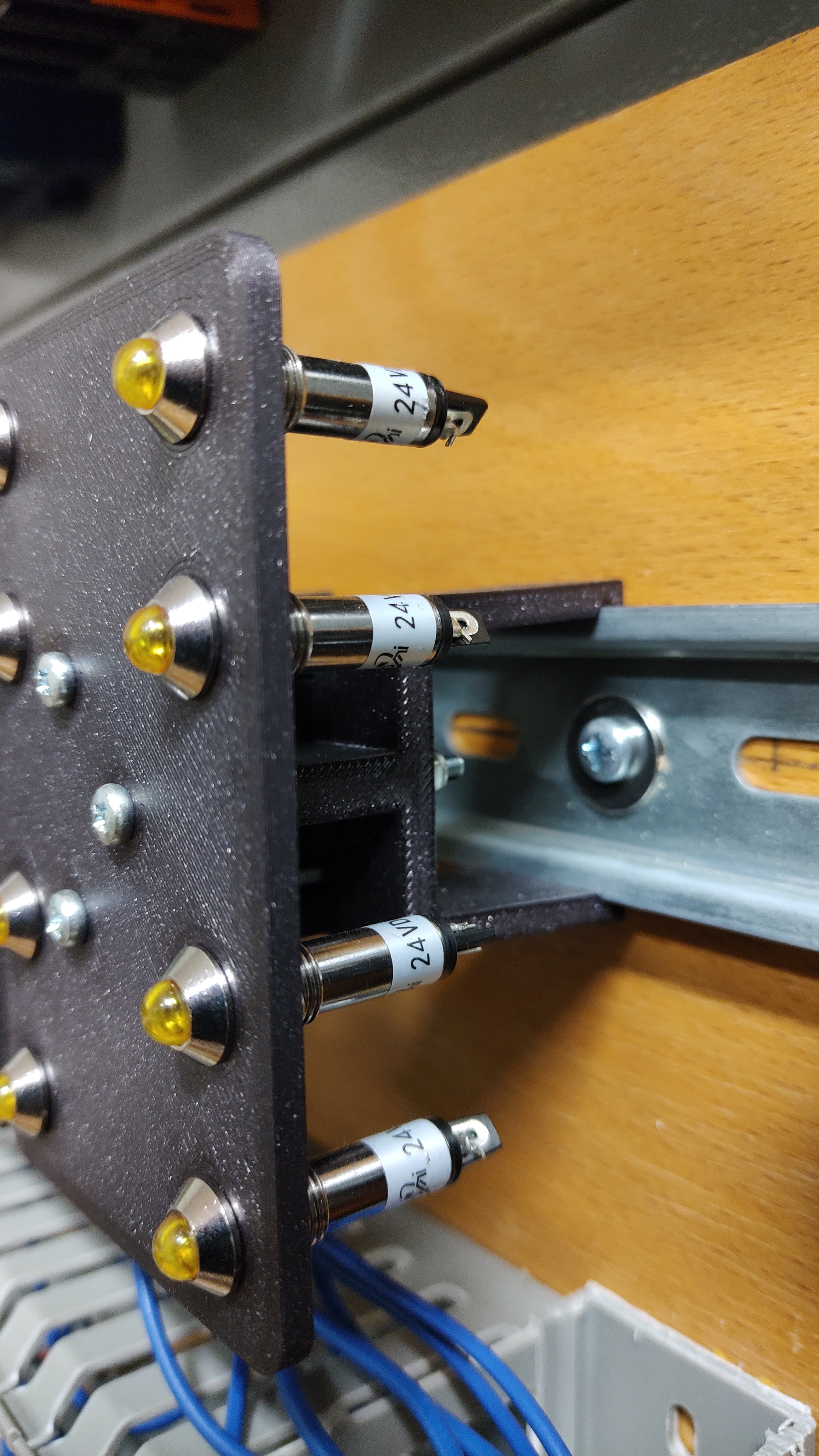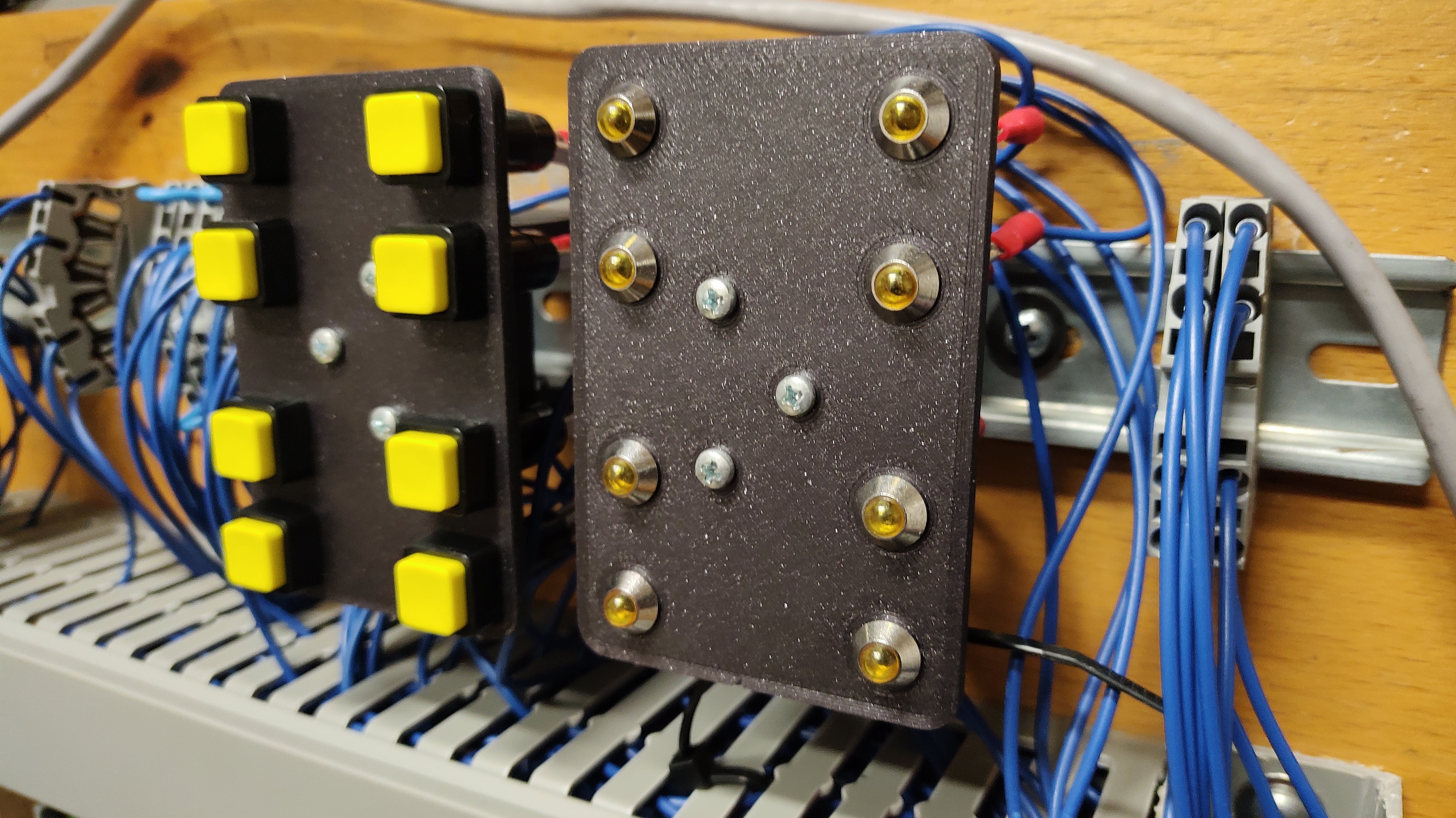 - Structuration des boutons et des LED sur rail DIN