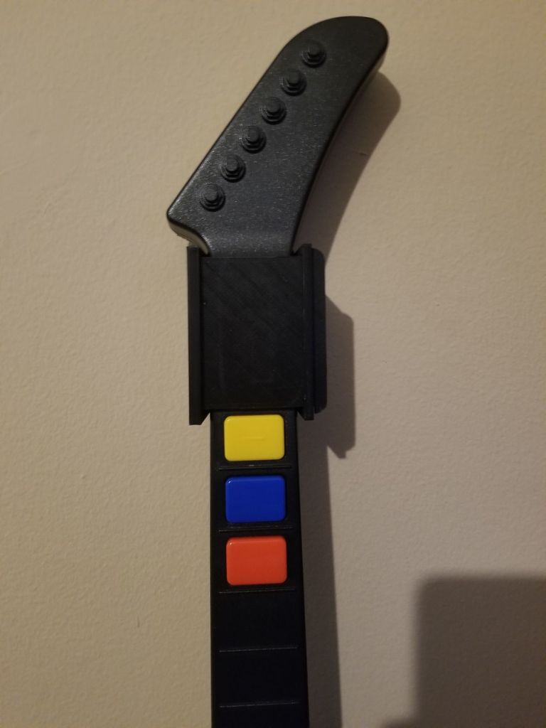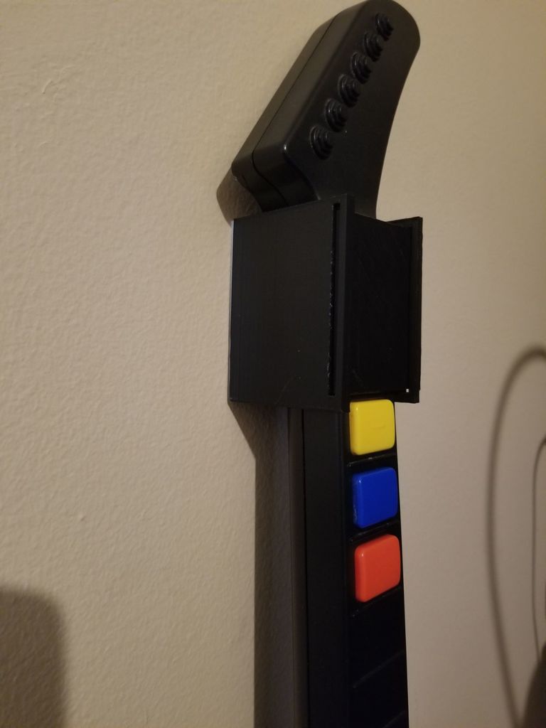 Conçu pour accrocher votre guitare en toute sécurité. Cette version présente des améliorations sous la forme d'un côté qui est maintenant incliné pour « pincer » le manche de la guitare, et d'un espace pour une plaque amovible. Il utilise du ruban adhésif double face pour montage mural d'Ace Hardware afin d'assurer une installation solide et stable.