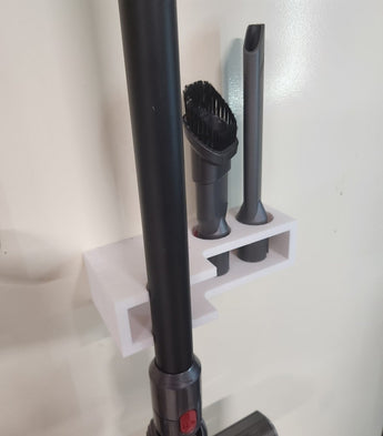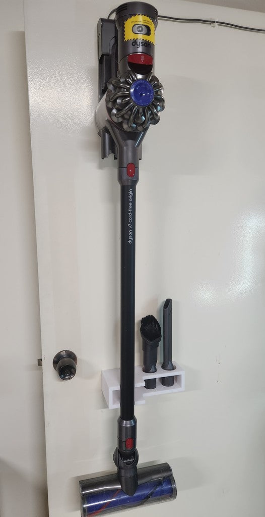 Ce support mural pratique pour un aspirateur Dyson v7 Origin peut être facilement monté au mur. Le support soutient le cou de Dyson pour éviter les vibrations gênantes qui peuvent user les joints du cou au fil du temps. De plus, le support a de la place pour ranger 2 accessoires Dyson, ce qui facilite le rangement des accessoires.