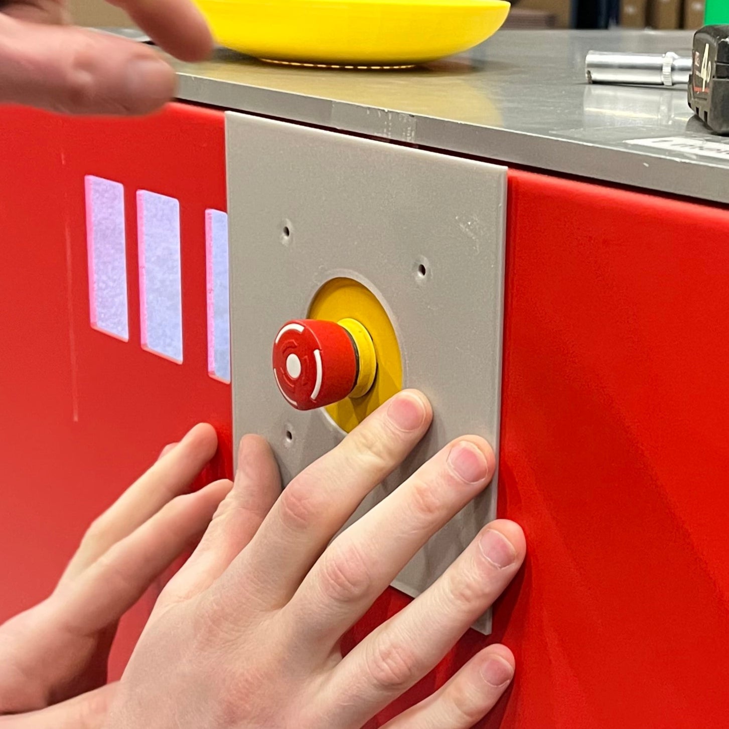 Évitez d'endommager le bouton d'arrêt d'urgence avec ce capuchon de protection