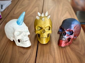 Ces modèles de crânes articulés possèdent une mâchoire mobile contrôlée par un mécanisme caché. Ils sont idéaux pour la décoration d'Halloween ou d'année et sont disponibles dans les versions Classique, Punk et Licorne. Conçus pour une impression facile 'Print-in-Place', ces objets uniques ne nécessitent aucun support.