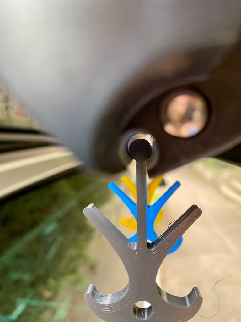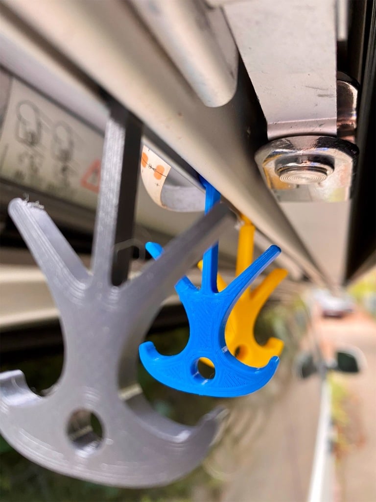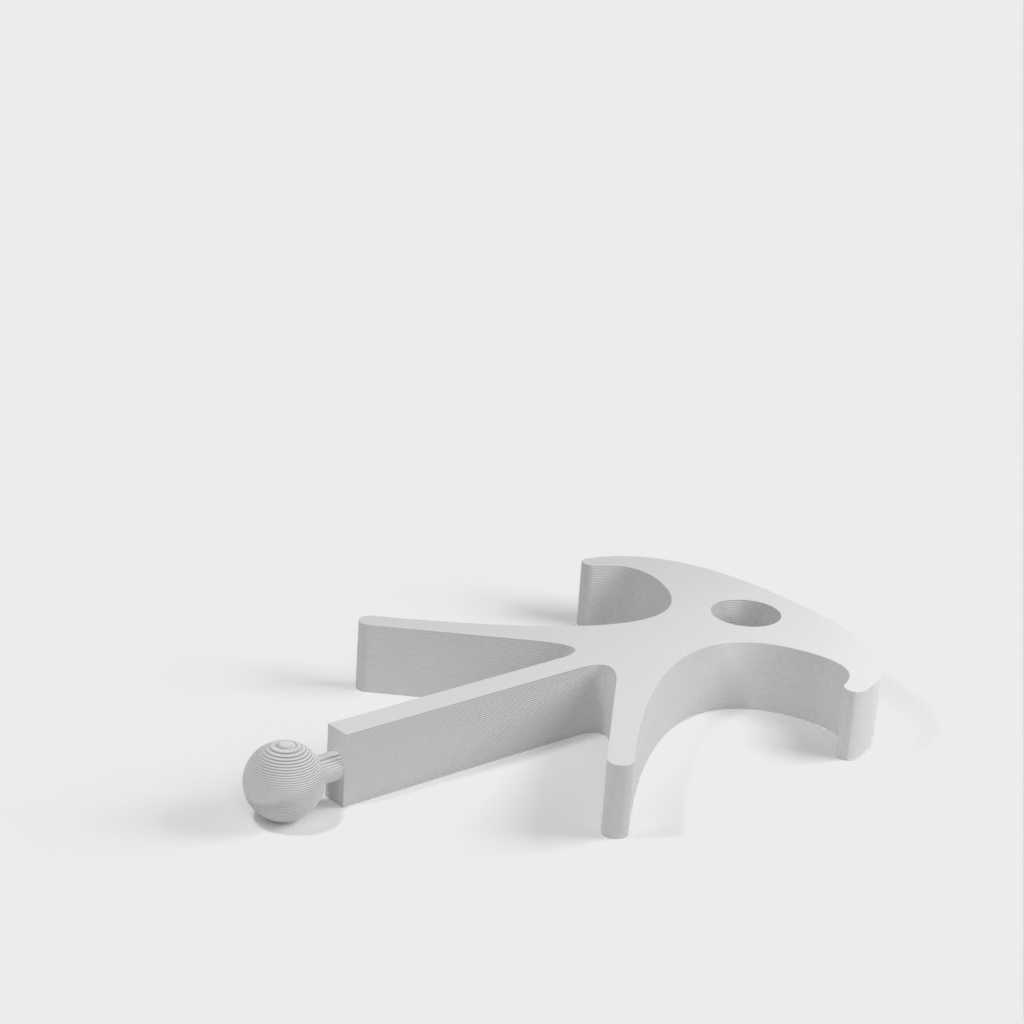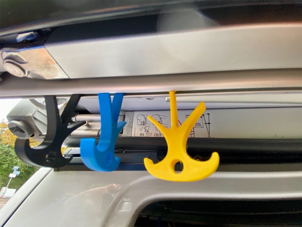 Il s'agit d'un crochet pour le tube de l'auvent VW T5 et T6 d'origine (Thule Omnistor 5102). Le crochet convient probablement également à d'autres canalisations. Il existe six versions différentes : avec des tiges et des billes (rotatives) ainsi que des arêtes vives, biseautées et arrondies.