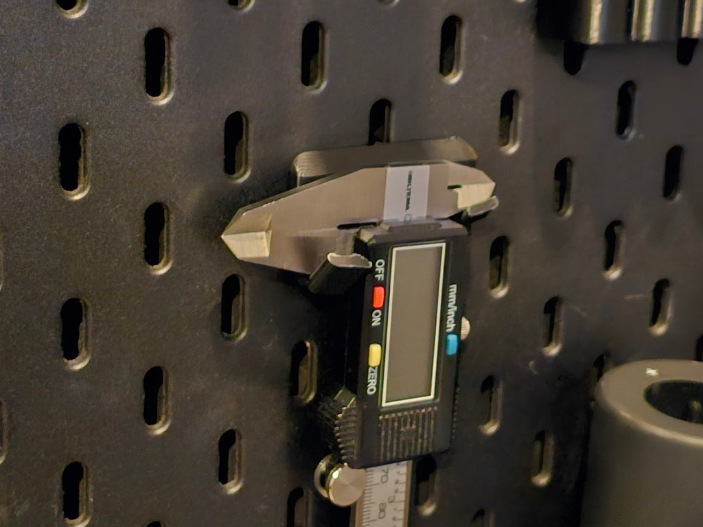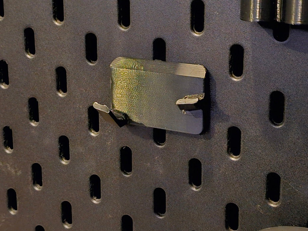 Il s'agit d'un support de calibre pour une plaque de montage IKEA SKÅDIS. Son corps supérieur est légèrement plus petit et présente des bords arrondis plus agréables que le modèle original. La construction du crochet a également été légèrement modifiée pour une meilleure utilisation.