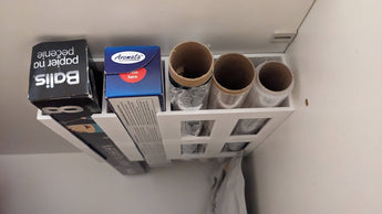 - Maintient les rouleaux de papier aluminium et de film alimentaire organisés