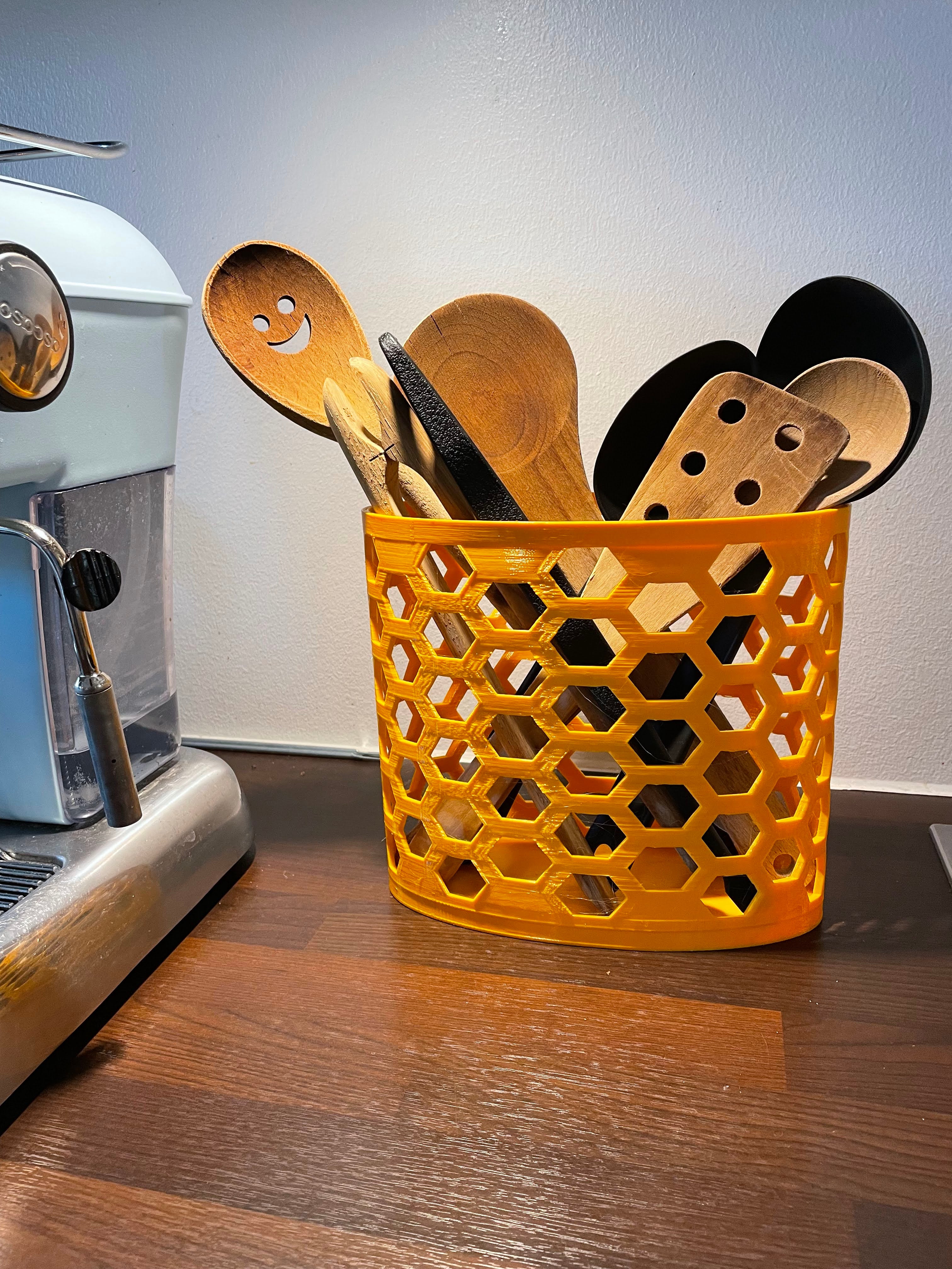 Ce porte-ustensiles de cuisine mince est parfait pour ranger vos ustensiles de cuisine essentiels. Sa taille compacte le rend idéal pour n'importe quelle cuisine et la couleur jaune melon ajoutera une touche de couleur. Ce porte-ustensiles est 200 % plus grand sur l'axe des x et 80 % plus petit sur l'axe des y par rapport à un modèle standard.