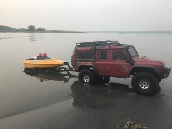 Découvrez notre remorque de bateau à l'échelle RC, conçue pour offrir un transport réaliste et stable de votre jet boat RC ou d'autres bateaux miniatures. Cette remorque est idéale pour les jet boats NQD et est également compatible avec les marques RC populaires telles que Axial et Traxxas, assurant une large compatibilité des appareils. La remorque est équipée de ressorts à lames fonctionnels qui contribuent à une suspension authentique et à une conduite souple sur différents terrains.