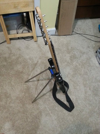 Le support offre une solution de rangement pratique qui aide à protéger l'instrument contre les chutes et les dommages. Pour plus de stabilité, un petit clip est inclus, qui peut être discrètement fixé à la guitare, offrant ainsi un repos encore plus sûr.
