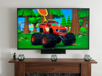 - Place le haut-parleur au ras du bas du téléviseur