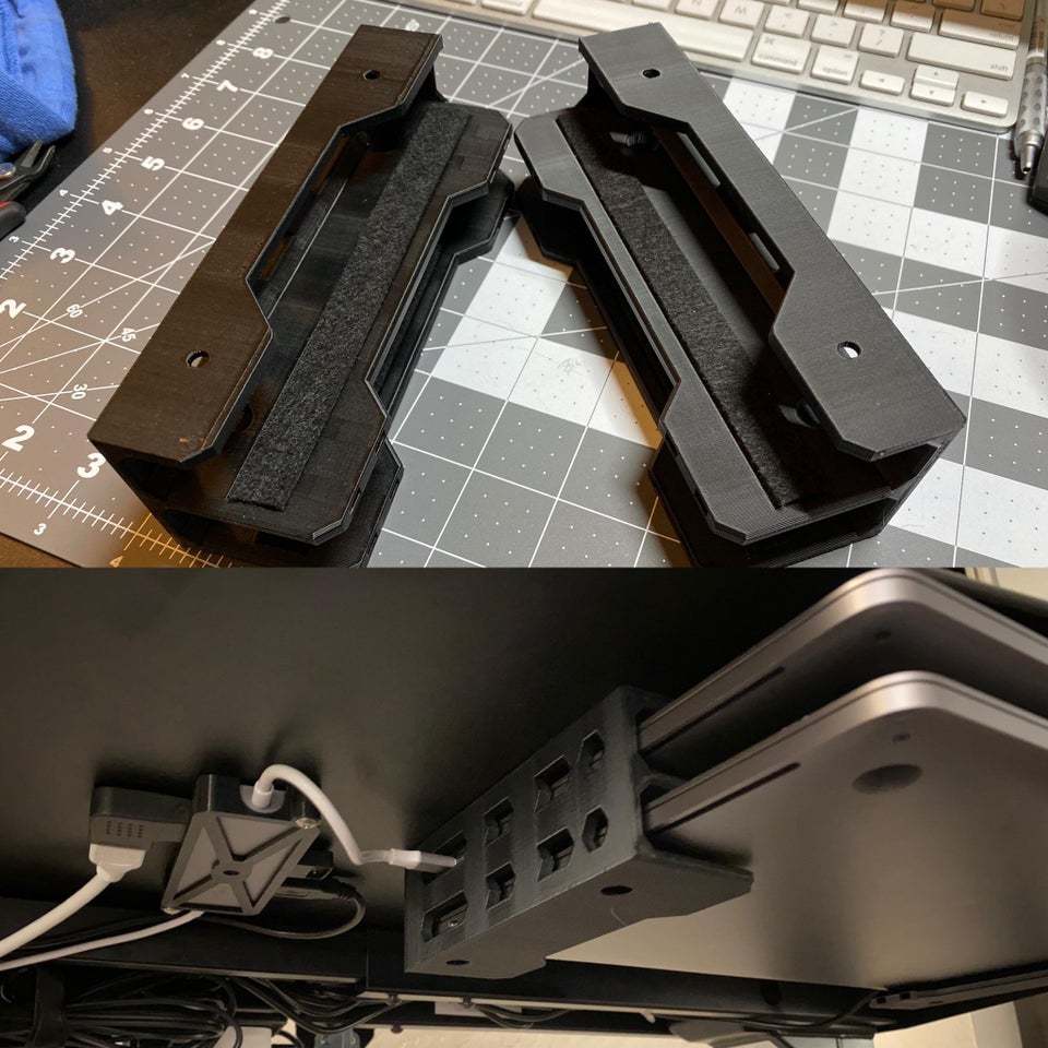 Libérez un espace précieux sur votre bureau avec ce support double pour ordinateur portable sous le bureau. Ce support est conçu pour offrir un stockage sûr et facilement accessible pour deux ordinateurs portables, ce qui le rend idéal pour séparer les appareils professionnels et personnels ou simplement organiser votre configuration numérique. C'est une solution compacte pour un espace de travail plus ordonné.